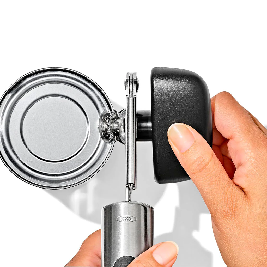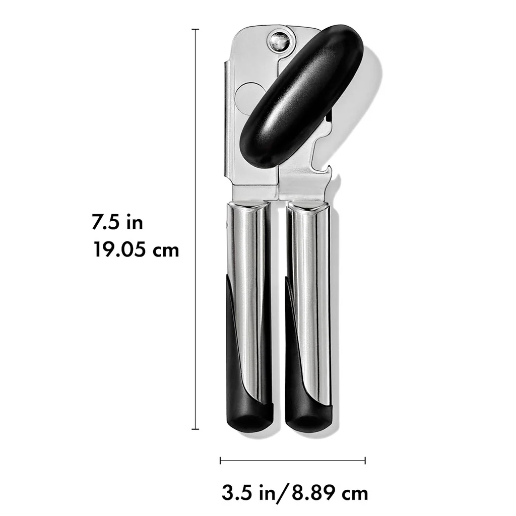Este Abrelatas de acero inoxidable 3en1 OXO destaca por su versatilidad y diseño compacto, siendo ideal para abrir fácilmente tanto latas como botellas.