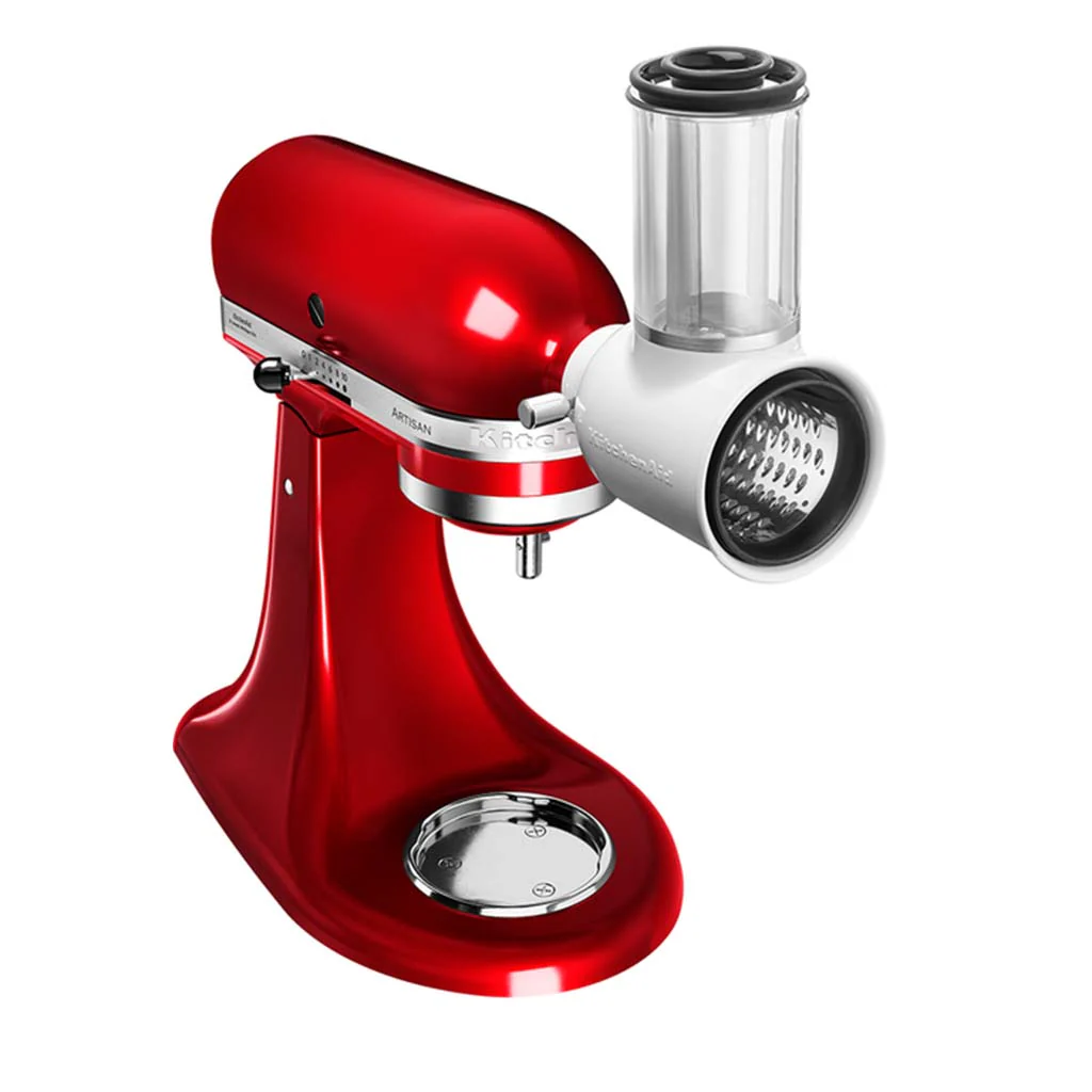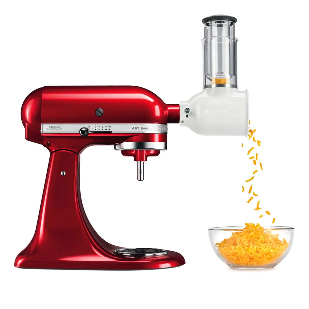 Con el Accesorio cortador y rebanador de KitchenAid podrás cortar, rallar y picar verduras, patatas e incluso almendras o nueces y todo tipo de quesos. Este cortador y rallador giratorio te ayudará a preparar los ingredientes de tus recetas en mucho menos tiempo y con unos resultados impecables