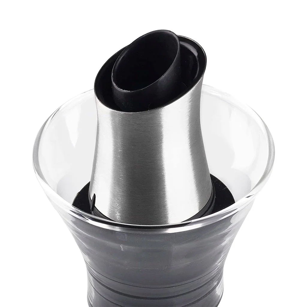 - El pico de acero inoxidable garantiza un vertido preciso, mientras que su sistema antigoteo mantiene todo limpio.