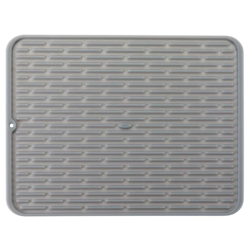 La Alfombrilla de secado de silicona OXO es ideal para escurrir y secar todo tipo de vajillas y utensilios de cocina, desde platos y vasos hasta cazos y ollas.