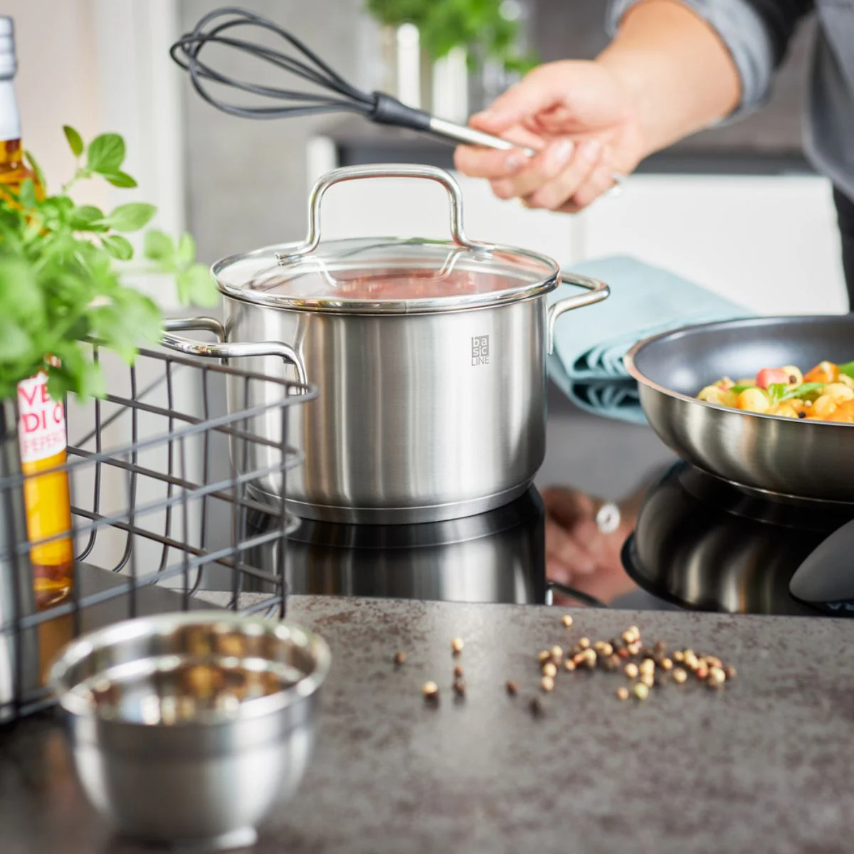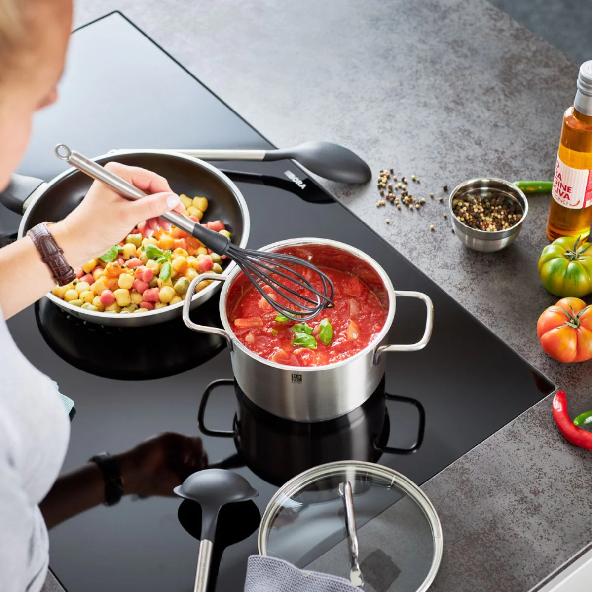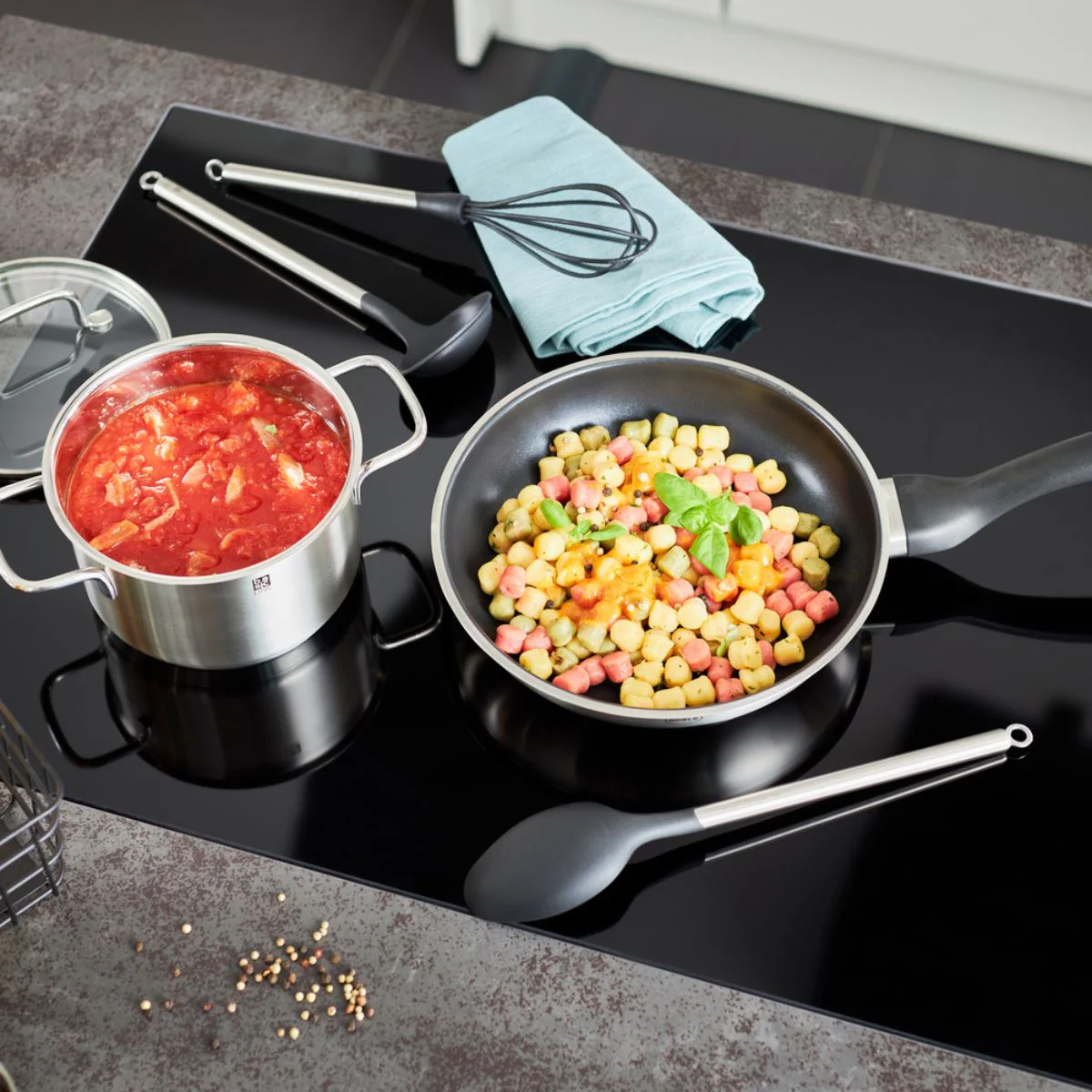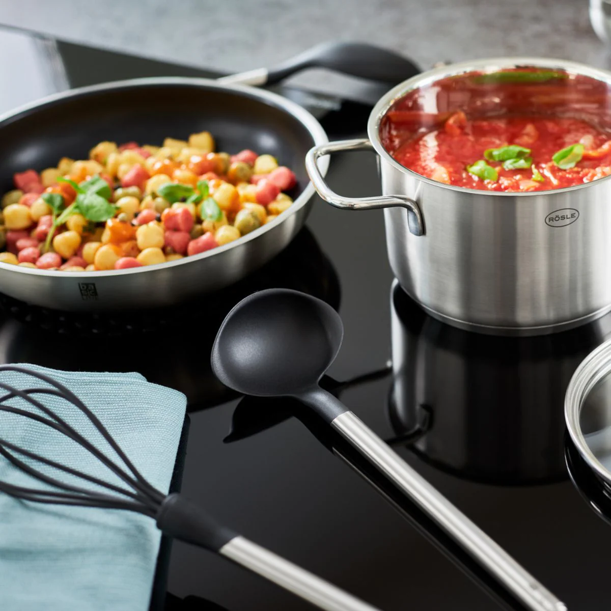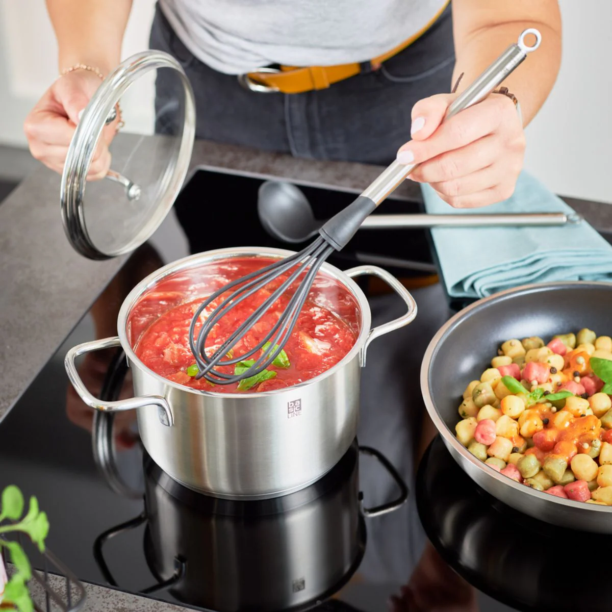 - Especialmente adecuado para su uso con utensilios antiadherentes y cerámicos: sartenes, cazos, ollas, cazuelas y boles.