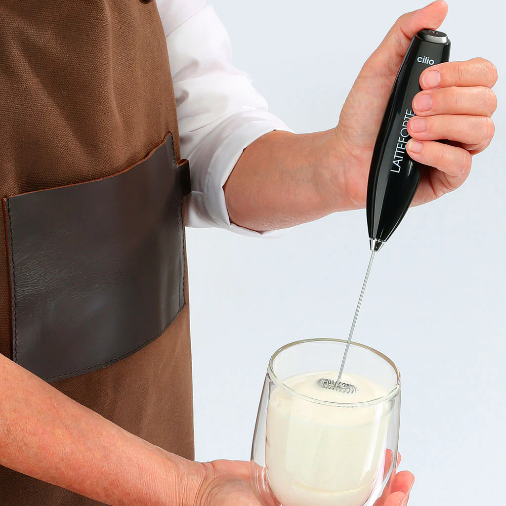 Con el Espumador de Leche Cilio, cada bebida que prepares será una obra de arte, con la espuma perfecta que corona tus cafés, chocolates y batidos. Su diseño elegante y funcionalidad avanzada lo convierten en un indispensable en tu cocina.