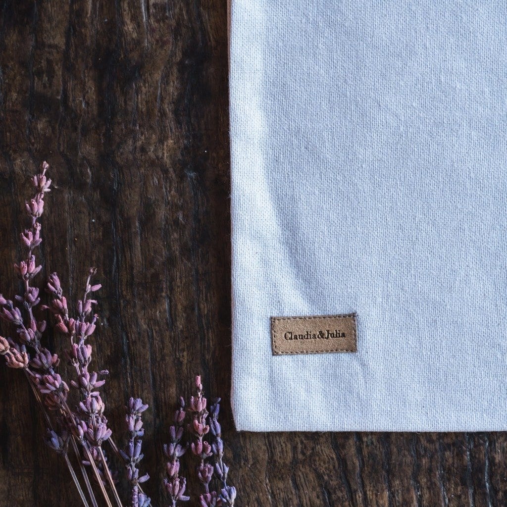 Su diseño de 100% algodón orgánico es simple pero bonito y agradable al tacto. Tiene en la parte inferior la etiqueta de Claudia&Julia en piel sintética bordada, y en la parte superior un cordón ajustable, por lo que la vas a poder cerrar fácilmente sin problema.