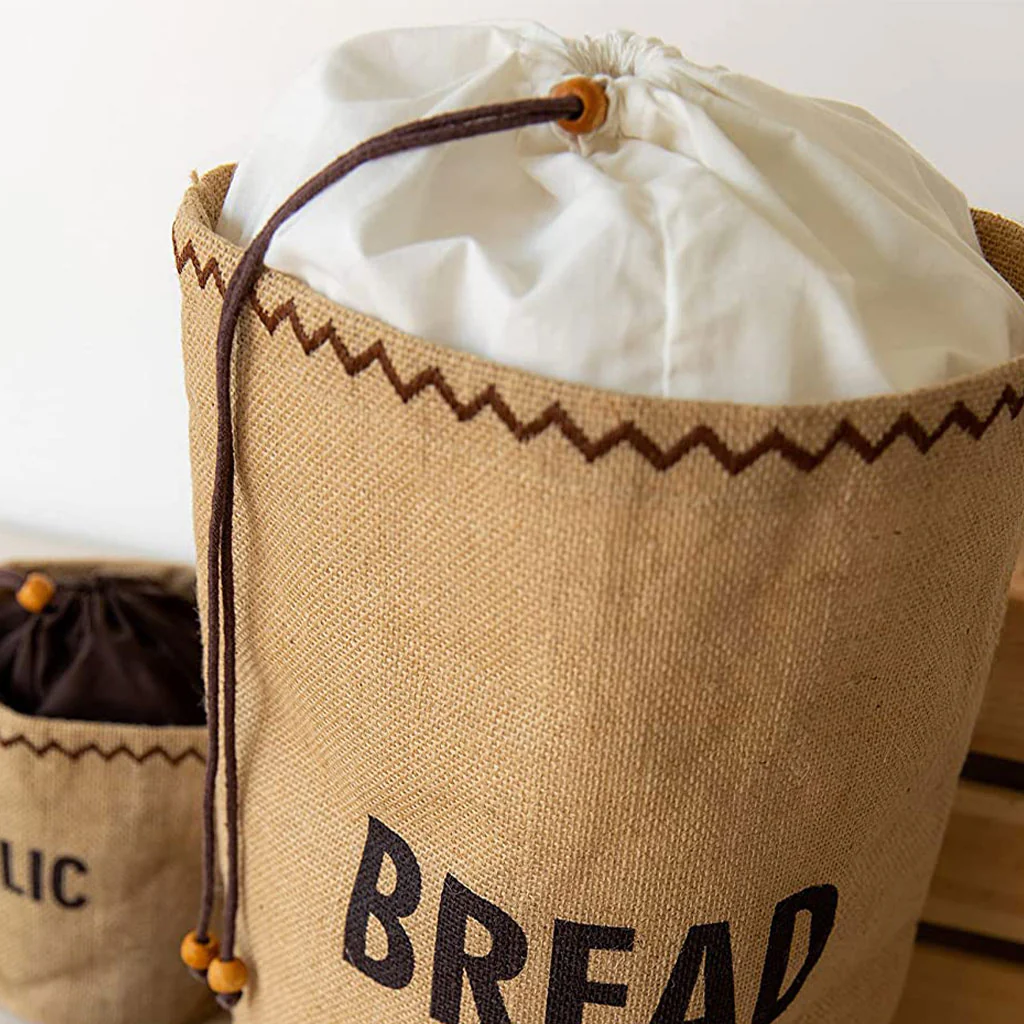 Puedes guardar hasta dos panes de tamaño medio en esta bolsa. Su uso de materiales rústicos le otorga un aspecto distintivo y de lo más bonito. Cuando no está en uso, se pliega fácilmente para un almacenamiento conveniente, convirtiéndola en una alternativa que ahorra espacio en comparación con un tradicional recipiente para el pan.