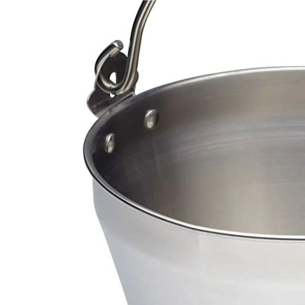 El diseño de la cacerola Maslin es de lo más original. Su asa superior abatible, que recuerda a un caldero, le otorga un aspecto único y encantador y la hace muy cómoda de transportar y manejar. También cuenta con una pequeña asa lateral, ideal para colgar una cuchara o para almacenarla colgada, lo que facilita el acceso a los utensilios de cocina durante la preparación de las comidas.