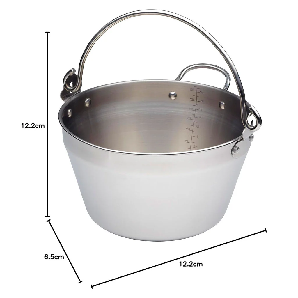 Mermeladas, confituras, sopas, cremas dulces o saladas, con la Cacerola Maslin de acero inoxidable de 4,5 litros para conservas caseras de KitchenCraft podrás hacerlo todo. Este estupendo cazo de acero inoxidable cuenta con una base que distribuye el calor de manera uniforme para una cocción perfecta (¡y es apta para todo tipo de fuegos!). Su diseño con asa a modo de caldero le otorga un aspecto encantador.