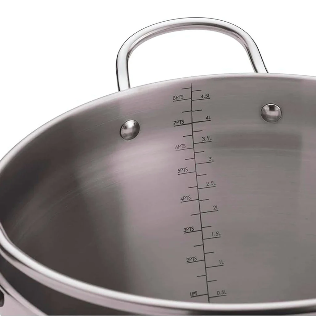 Su fondo difusor tipo sandwich la hace apta para todo tipo de cocinas, incluidas las de inducción. Además de ser ideal para preparar mermeladas, sopas, cremas o estofados, al ser de acero inoxidable, podrás convertirla en una encantadora champañera cuando no tengas ocupada en la cocina.