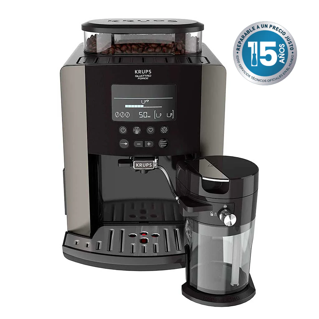 Con la Cafetera superautomática Quattro Force Arabica de Krups vas a disfrutar de unos cafés llenos de sabor y con un aroma tan delicioso como los de tu cafetería favorita, sin salir de casa. Tan rápido, eficiente y fácil como apretar un botón, con esta máquina de café superautomática podrás saborear en 30 segundos desde un expresso intenso a un cremoso capuccino, tan maravilloso como el de un barista profesional.