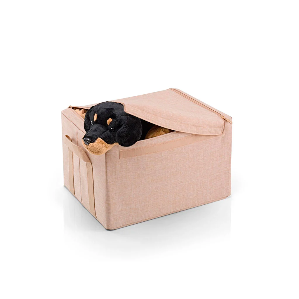 Pero lo que realmente nos encanta de esta caja es su practicidad y comodidad. Gracias a su marco interno de alambre plegable, la caja se mantiene estable y es fácil de abrir y cerrar. Además, el cierre seguro con dos cremalleras y velcro asegura que todo lo que guardes esté bien protegido. Y cuando necesites moverla, sus dos asas robustas hacen que desplazarla sea cómodo y sin esfuerzo. ¡Si es que lo tiene todo!