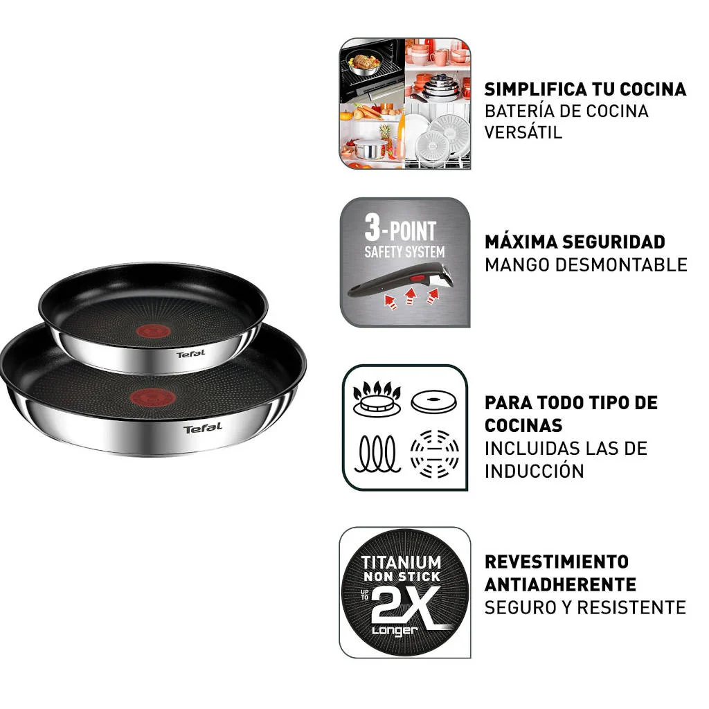 - Mango extraíble: Este set de sartenes Ingenio incluye un mango extraíble, que te permite: