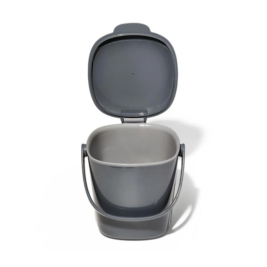 Introduce el Cubo de basura para encimera OXO en tu encimera y conseguirás una solución práctica para desechar cómodamente peladuras y restos de comida durante la preparación de tus recetas. Está práctica papelera no solo mantiene tu cocina limpia y ordenada en todo momento, sino que también promueve el reciclaje y hábitos sostenibles.
