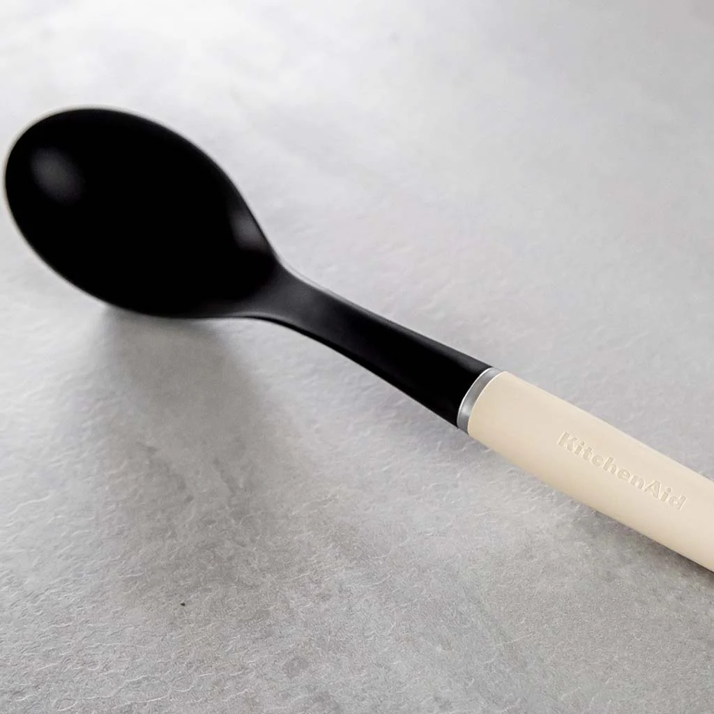 Arroces, estofados o legumbres. Con la Cuchara KitchenAid servirás tus guisos sin miedo a rayar tus cazuelas y sartenes, incluso las antiadherentes, al estar fabricada en nailon. Resistente y duradera, ¡te encantará repartir tus recetas con ella!