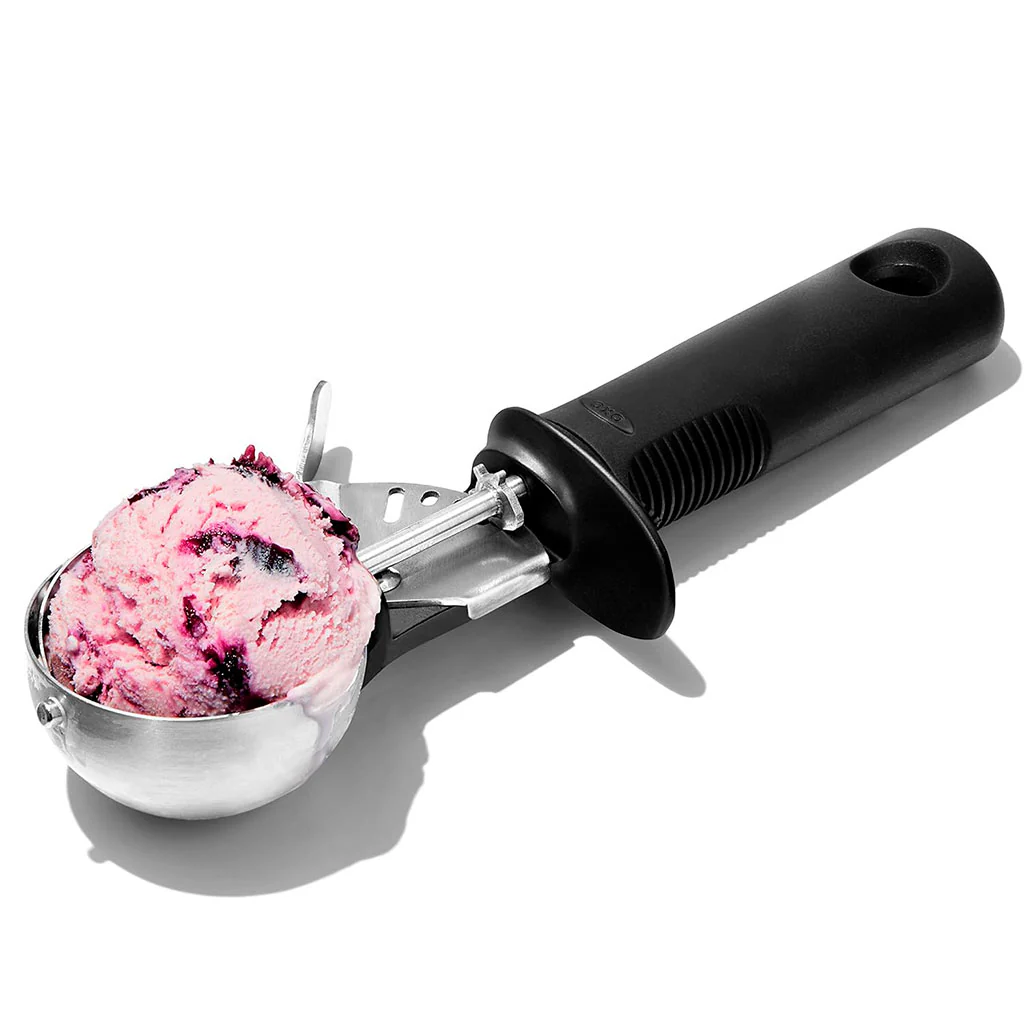 La Cuchara para helados Trigger OXO es la ayudante perfecta para porcionar tus bolas de helado XL. Fabricada en acero inoxidable, cuenta con un cómodo mecanismo de muelle que te permitirá obtener la cantidad precisa de masa o de helado con solo usar el pulgar para presionar el botón lateral.