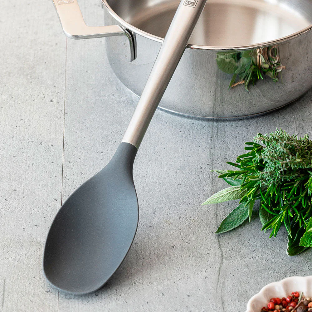 Si hay dos adjetivos que definen a la perfección la cuchara Signature BRA son gran calidad y estética elegante, sin ningún tipo de duda. Esta cuchara es un buen aliado para preservar el estado óptimo de tu batería de cocina, ya que ha sido diseñada con el objetivo puesto en evitar arañados o rayaduras y cuidar las superficies antiadherentes de ollas, sartenes y cacerolas.