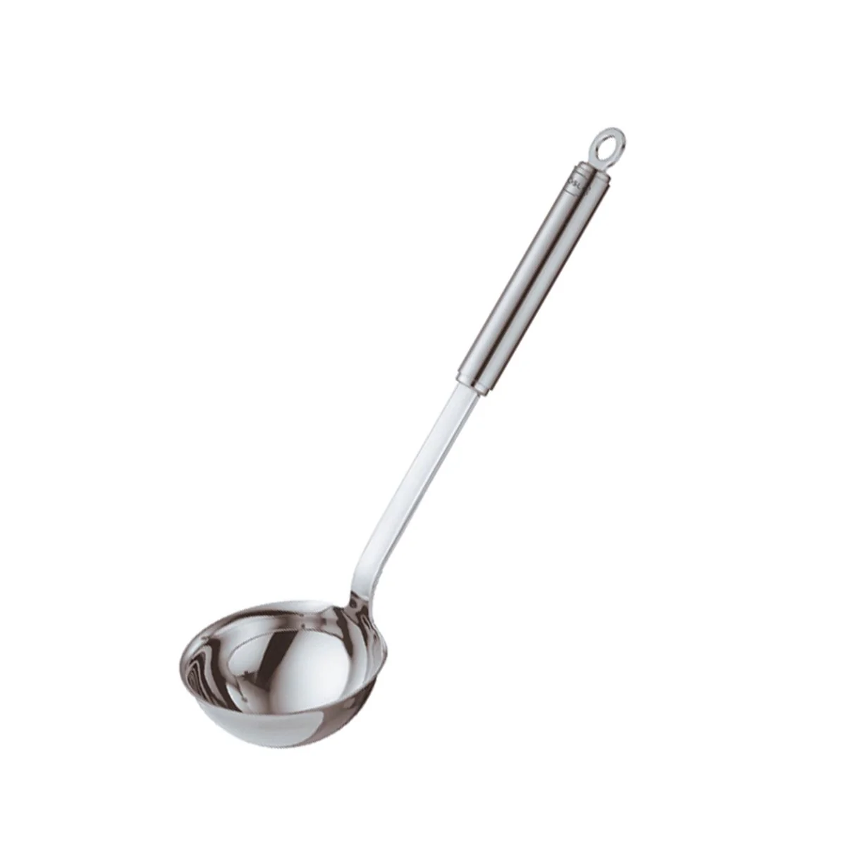 - Cucharón de acero inoxidable con mango redondo Rösle.