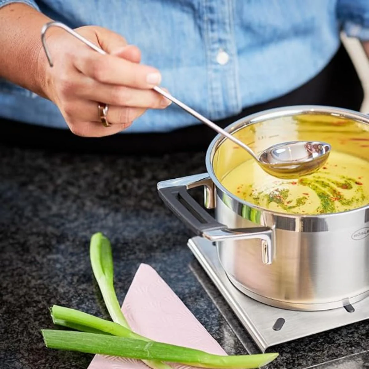 ¿Ya sabes con qué receta vas a estrenar tu nuevo cucharón de acero inoxidable de gancho Rösle? ¿A qué esperas para hacerte con él?