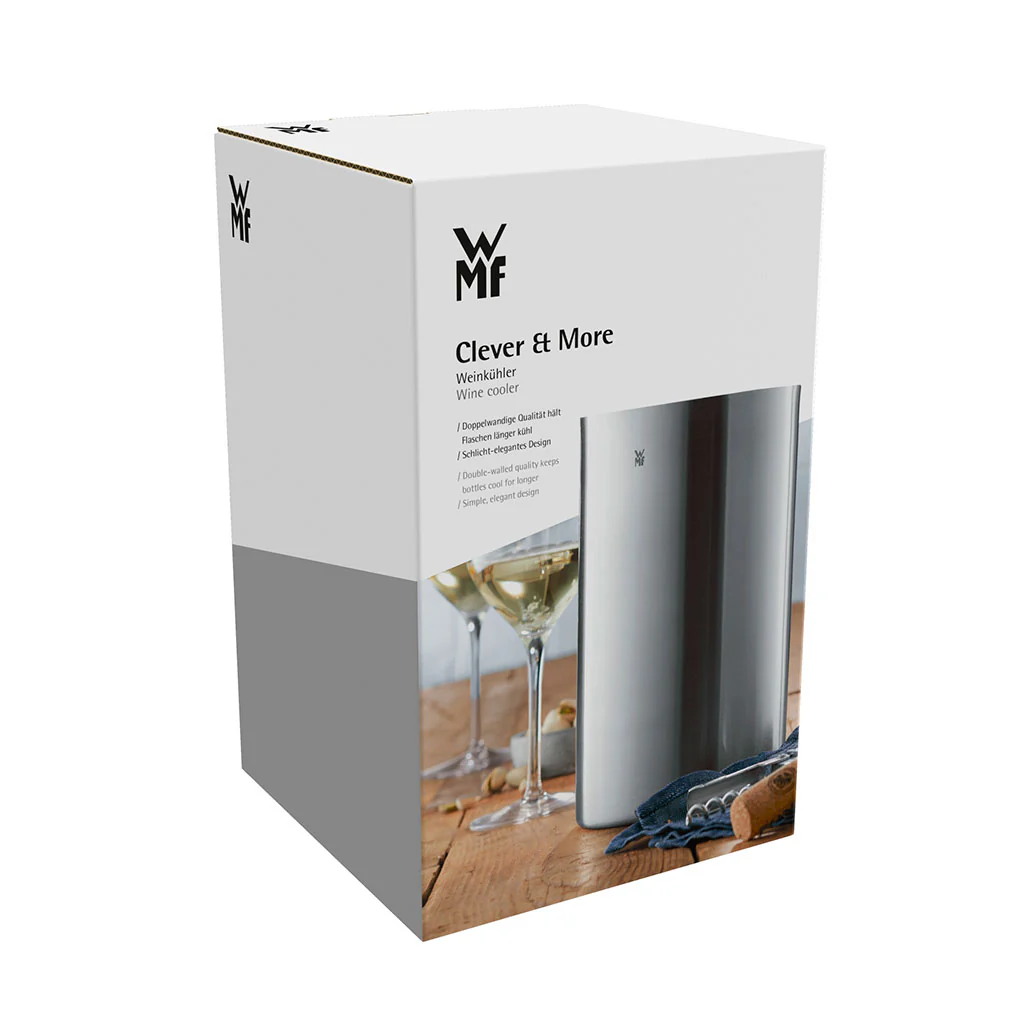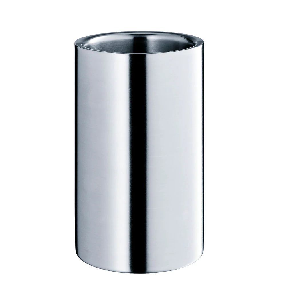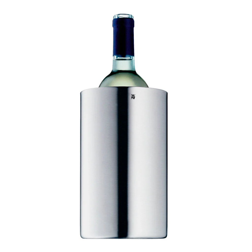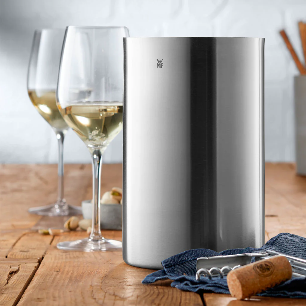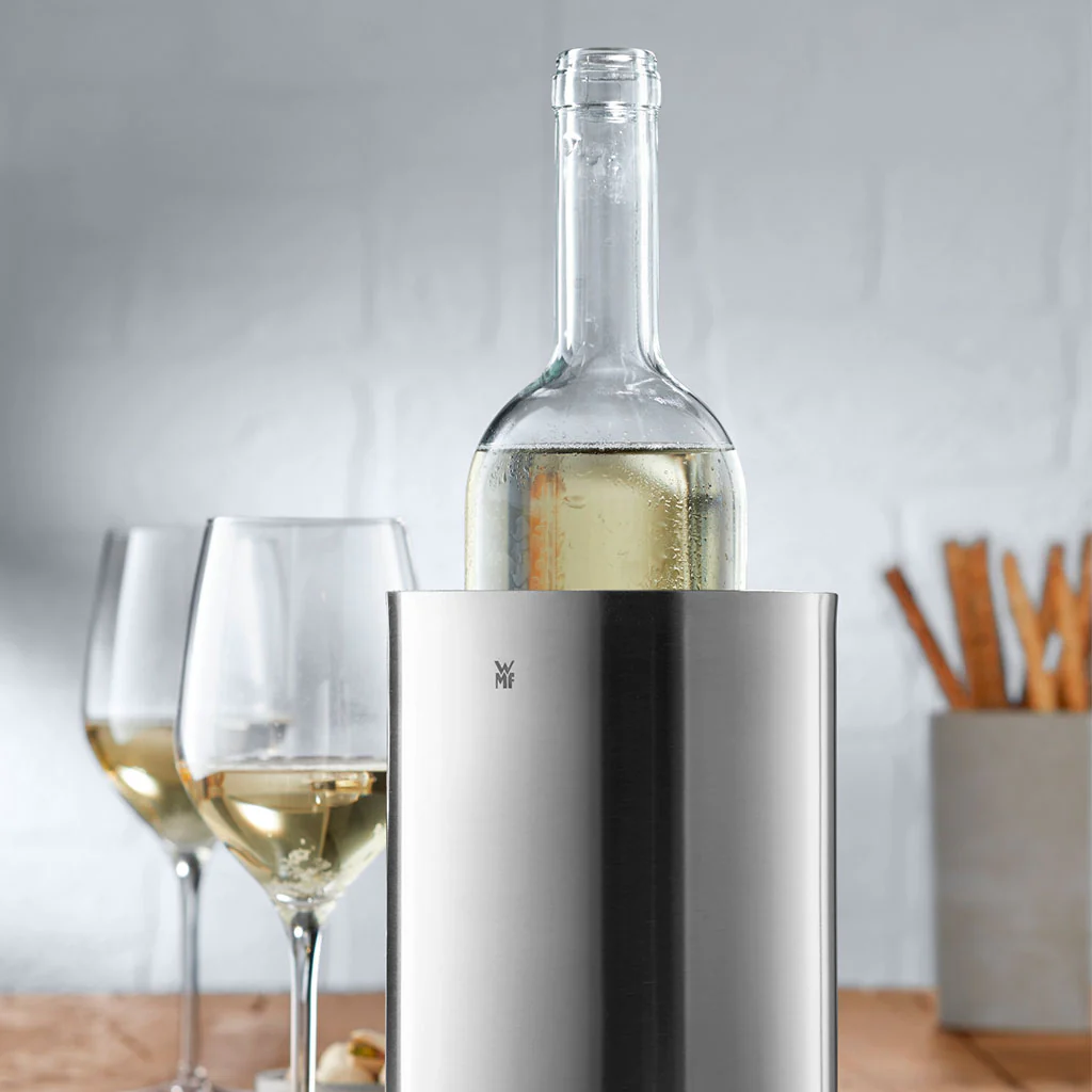 El Enfriador de botellas Manhattan de WMF es distinto a cualquier otro enfriador que hayas visto antes. Se trata de un recipiente de doble pared de acero inoxidable, perfecto para servir y beber el vino y el vino espumoso a la temperatura óptima durante horas, sin tener que usar hielo, cubiteras o paños fríos.