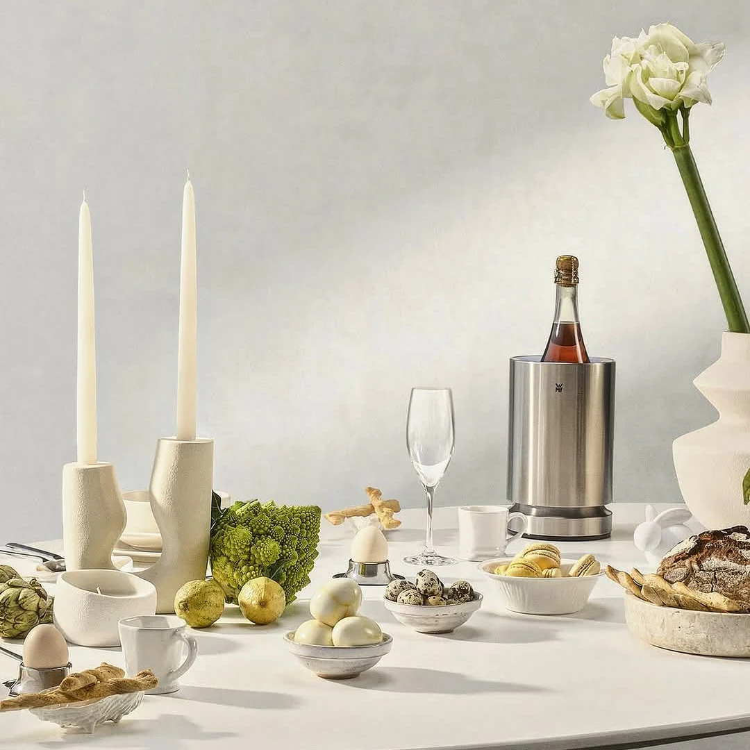 La funda enfriadora Ambient de WMF es un enfriador de mesa en acero inoxidable de lo más elegante… ¡e iluminado con LED! Es perfecto para conservar frías tus botellas de vino o cava y, sin duda, dar este toque super especial a tu mesa.