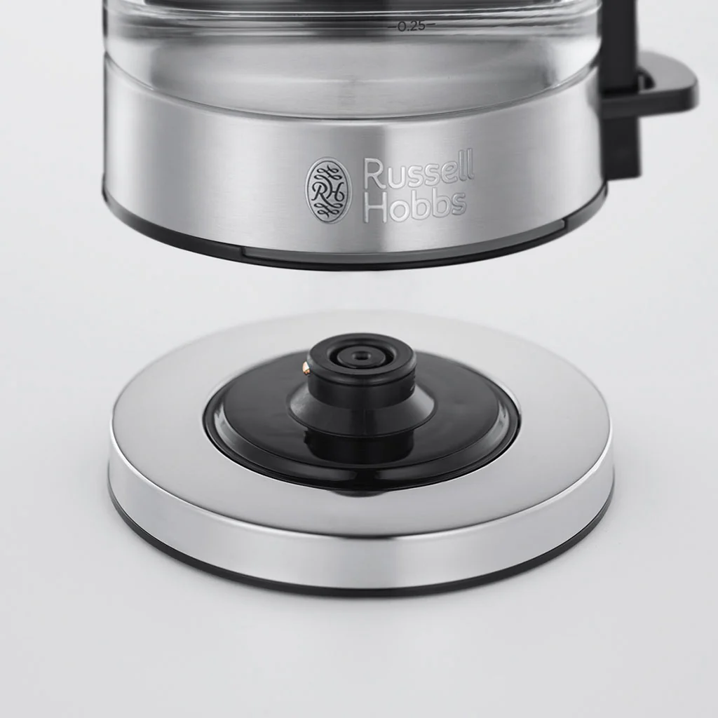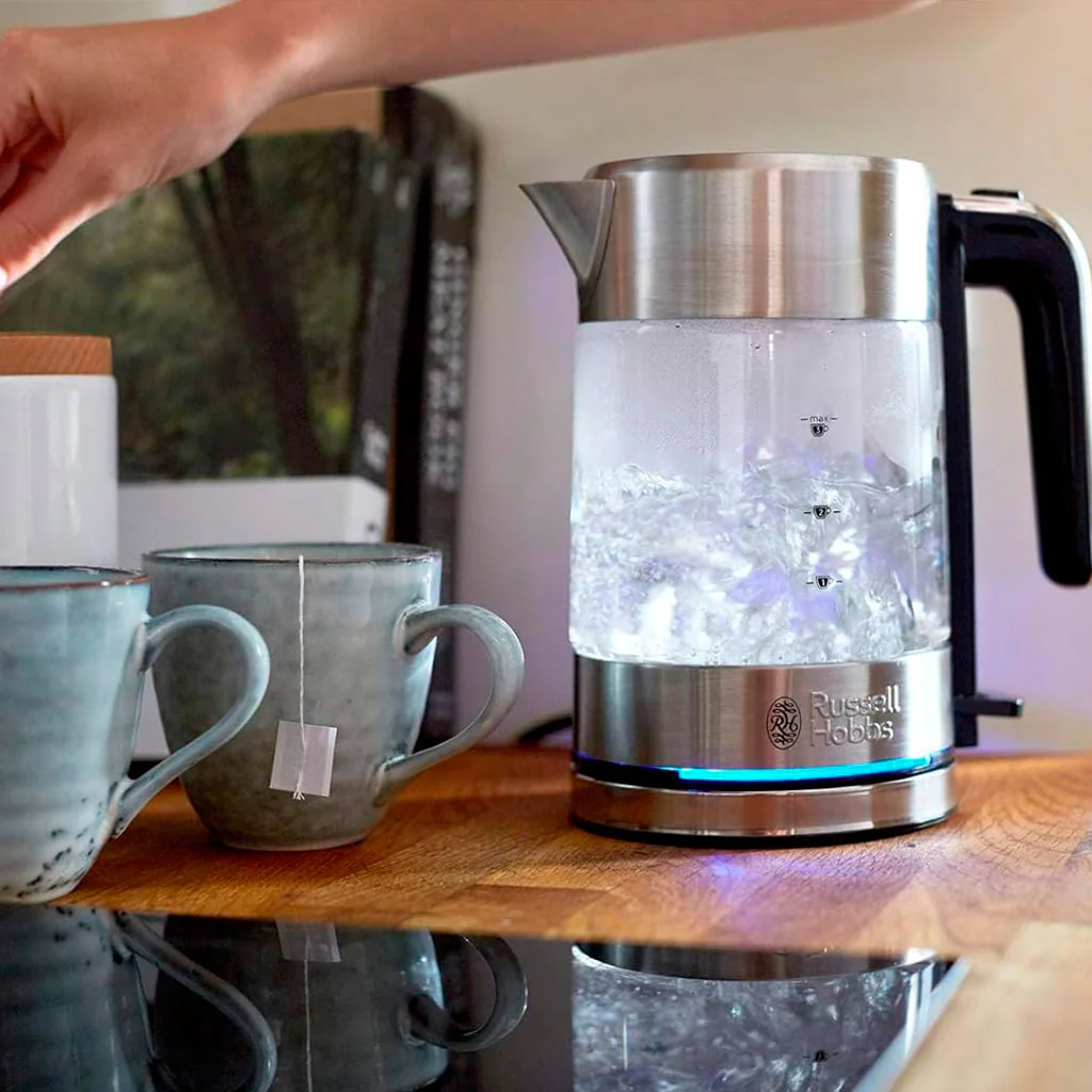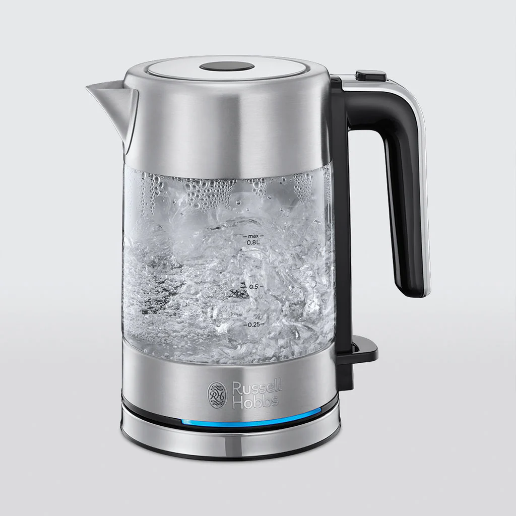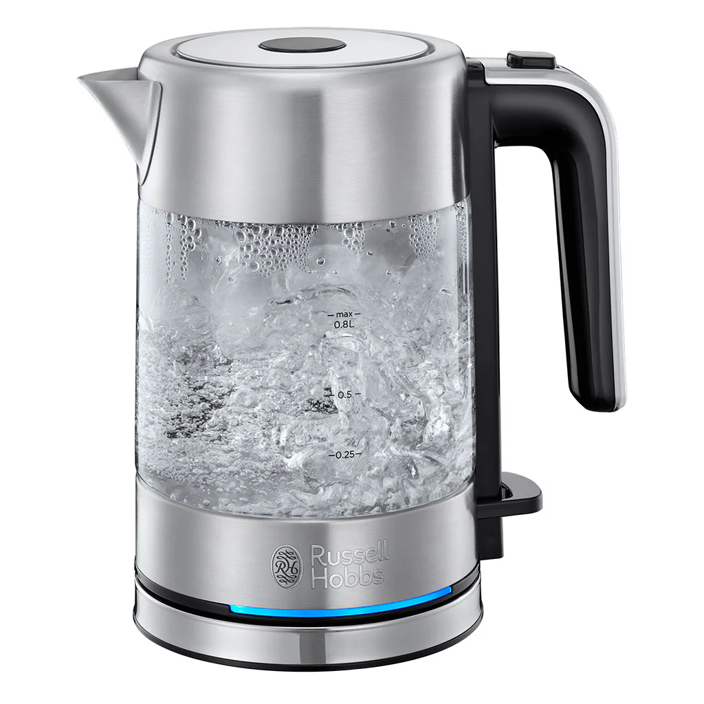 Conecta el Hervidor de vidrio Compact Home de Russell Hobbs y enamórate de su original estética y facilidad de uso. Su diseño elegante, con detalles en acero inoxidable pulido y vidrio de alta gama, le añade un toque de estilo a tu cocina mientras hierve hasta 0,80 litros de agua. Es muy original: su indicador azul te permite ver cómo se calienta el agua, haciendo el proceso de ebullición más interactivo y divertido. ¡Es precioso!