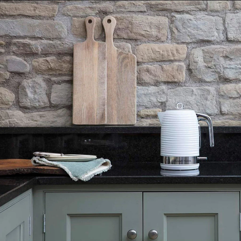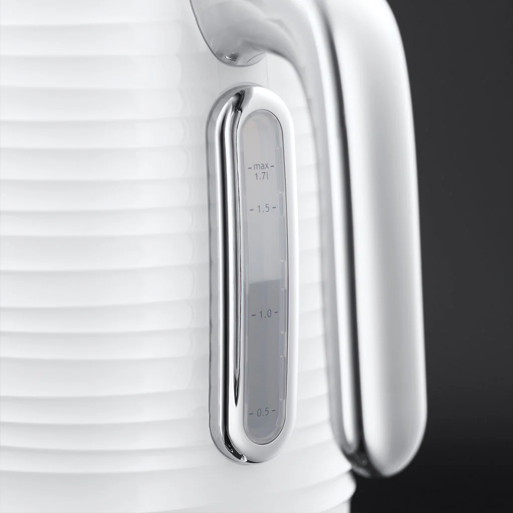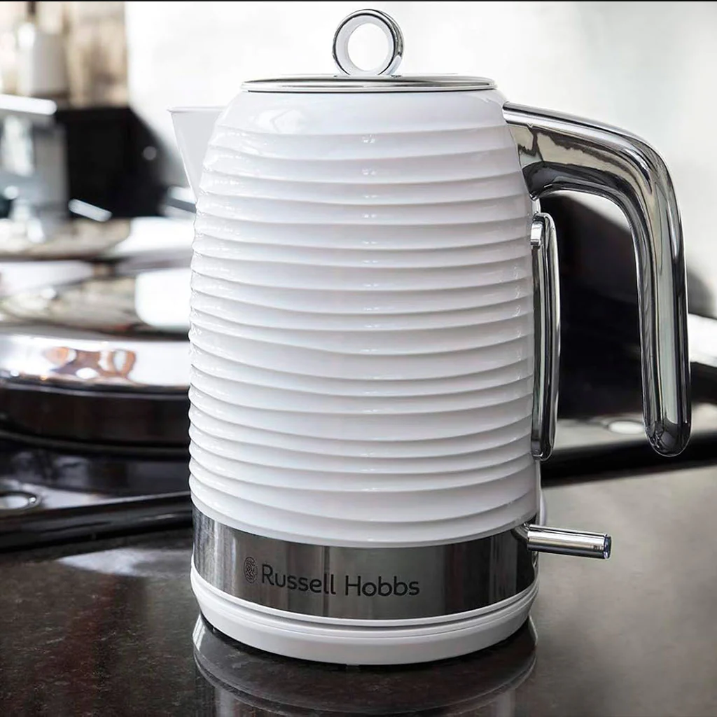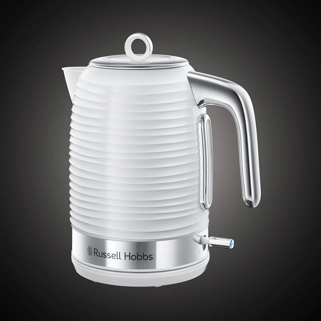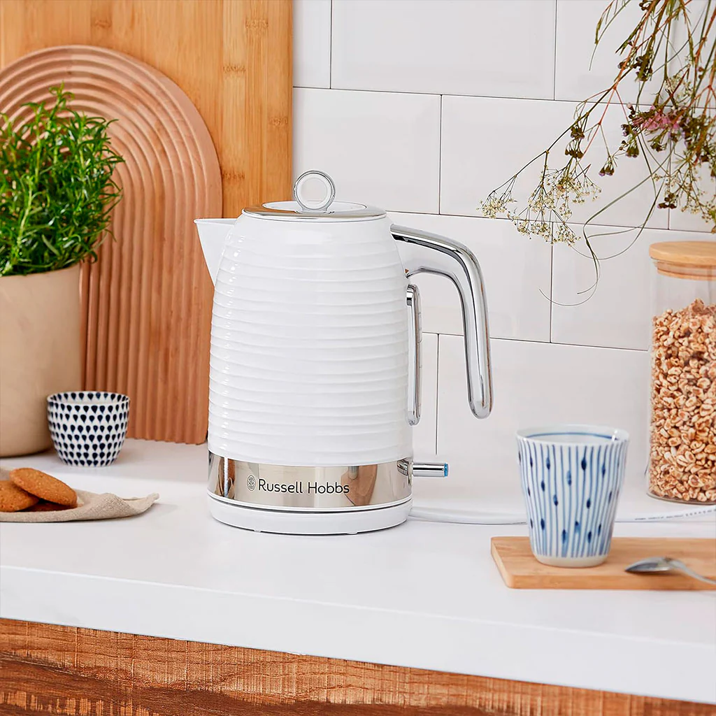 Con el Hervidor Inspire de Russell Hobbs, disfrutar de un buen té o café será más rápido y fácil que nunca. Su bonito diseño rallado en color blanco nieve, llenará de estilo tu cocina mientras hierve hasta 1,7 litros de agua para el té o el café.
