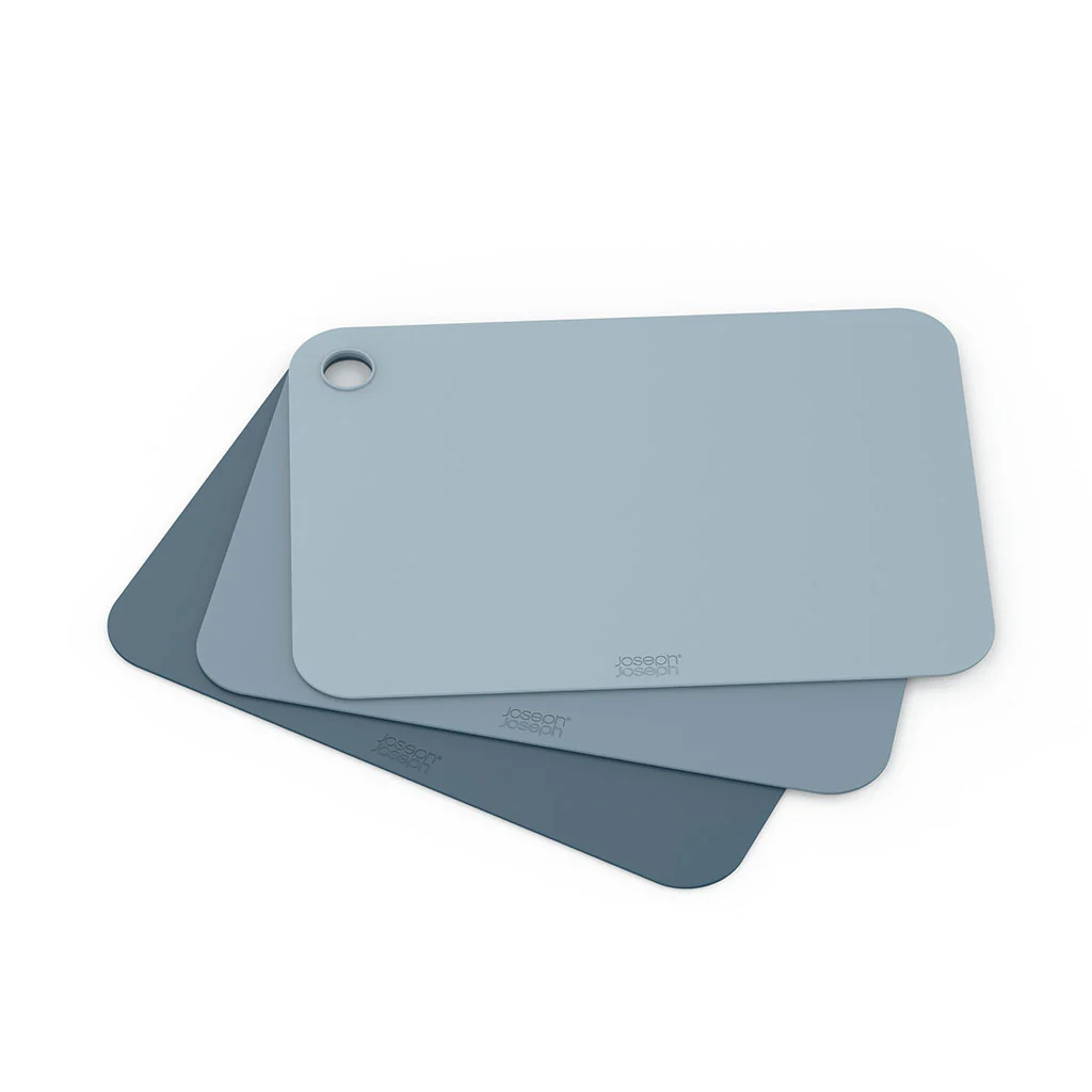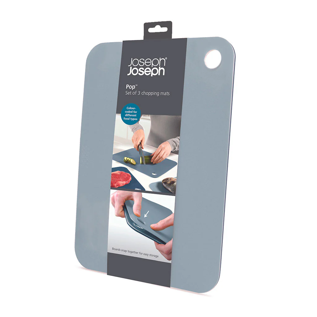 El Juego de 3 tablas de cortar Pop Joseph Joseph es un práctico set de 3 superficies de corte de almacenaje compacto, perfecto para la preparación de tus recetas. Cada una de las 3 tablas del conjunto es de un color o tono diferente, para que puedas seleccionar la superficie adecuada para cada alimento. Podrás usar las tablas por ambas caras sin miedo a dañar el filo de tus cuchillos.