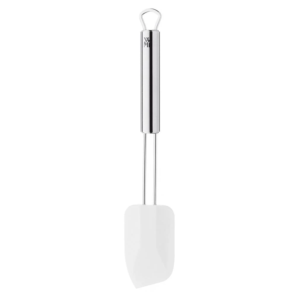 Esta espátula de silicona o lengua de repostería de WMF, con mango de acero inoxidable y cabezal de silicona en color blanco, es un utensilio perfecto para mezclar, servir, sofreír, saltear o raspar nuestra sartén o rebañar los boles gracias a la flexibilidad que ofrece su cabezal. Además, al ser de silicona flexible nunca dañará nuestros utensilios.