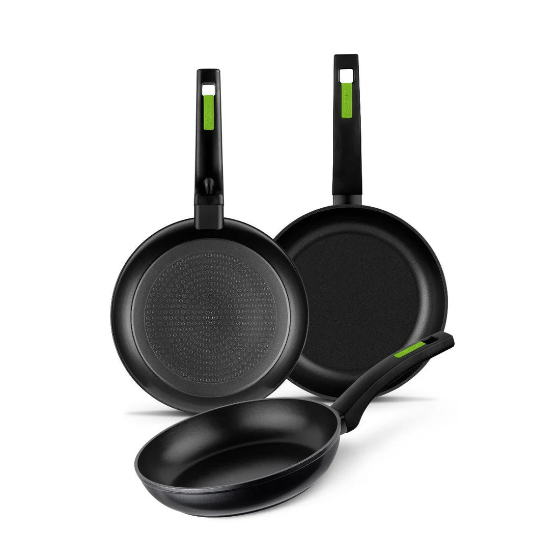 - Lote de 3 sartenes: 18, 22 y 26 cm.