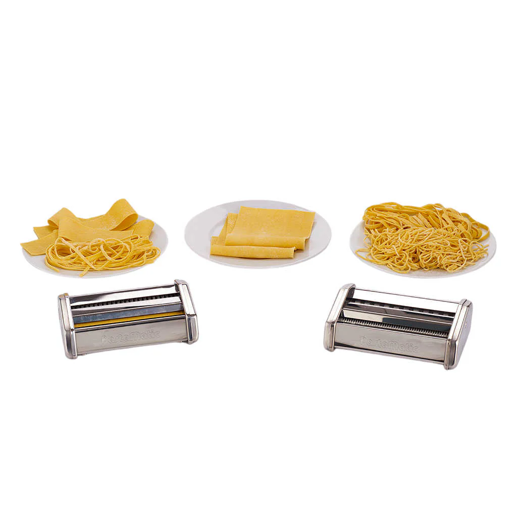 - Permite hacer: fettuccine (0.2 cm y 0.3 cm), tagliatelle (0.6 cm), pappardelle (4.5 cm) y lasaña.