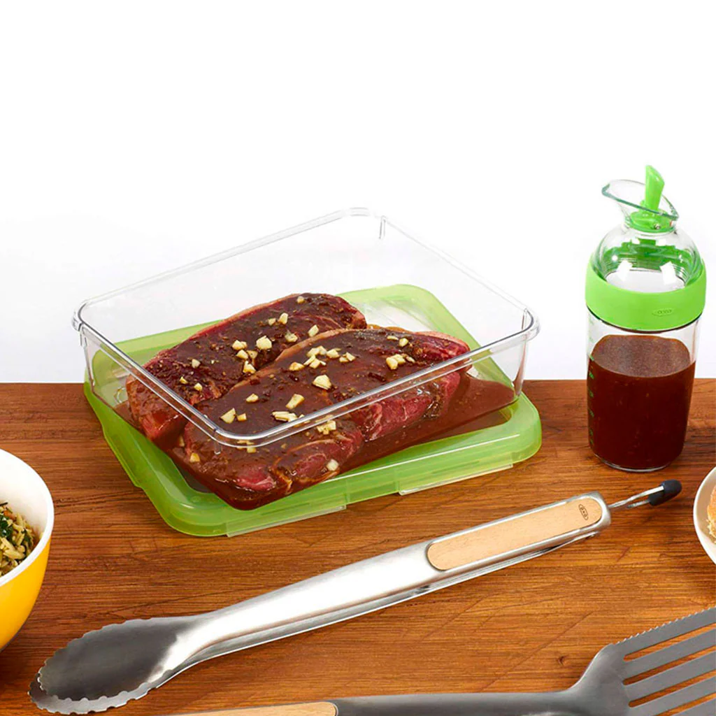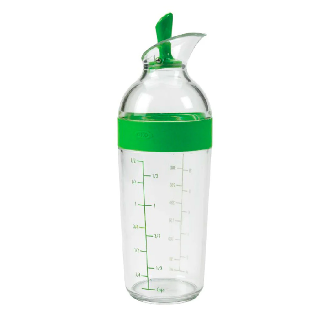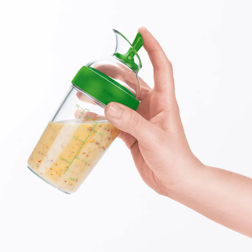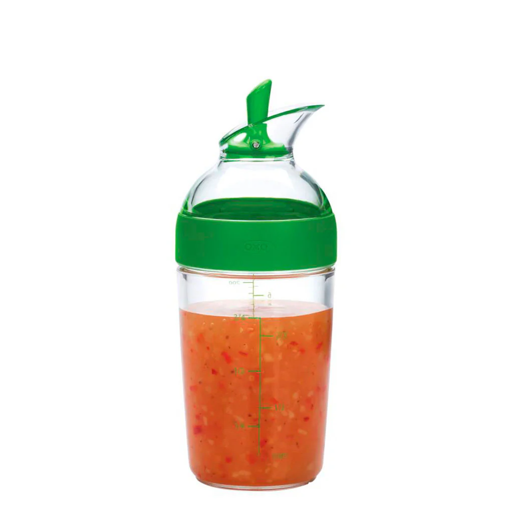 El Mezclador para vinagretas y aliños OXO es ideal para preparar, servir y mezclar tus salsas, aliños, o marinadas de forma limpia y fácil. Gracias a su amplia apertura para añadir los ingredientes, a su cierre hermético y a su pico vertedor antigoteo, tendrás preparadas tus vinagretas en un santiamén, listas para aderezar tus platos directamente, sin cambiar de recipiente. ¡Tan fácil como agitar una coctelera!