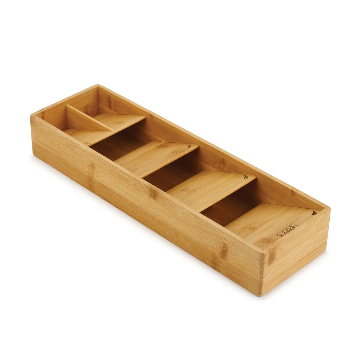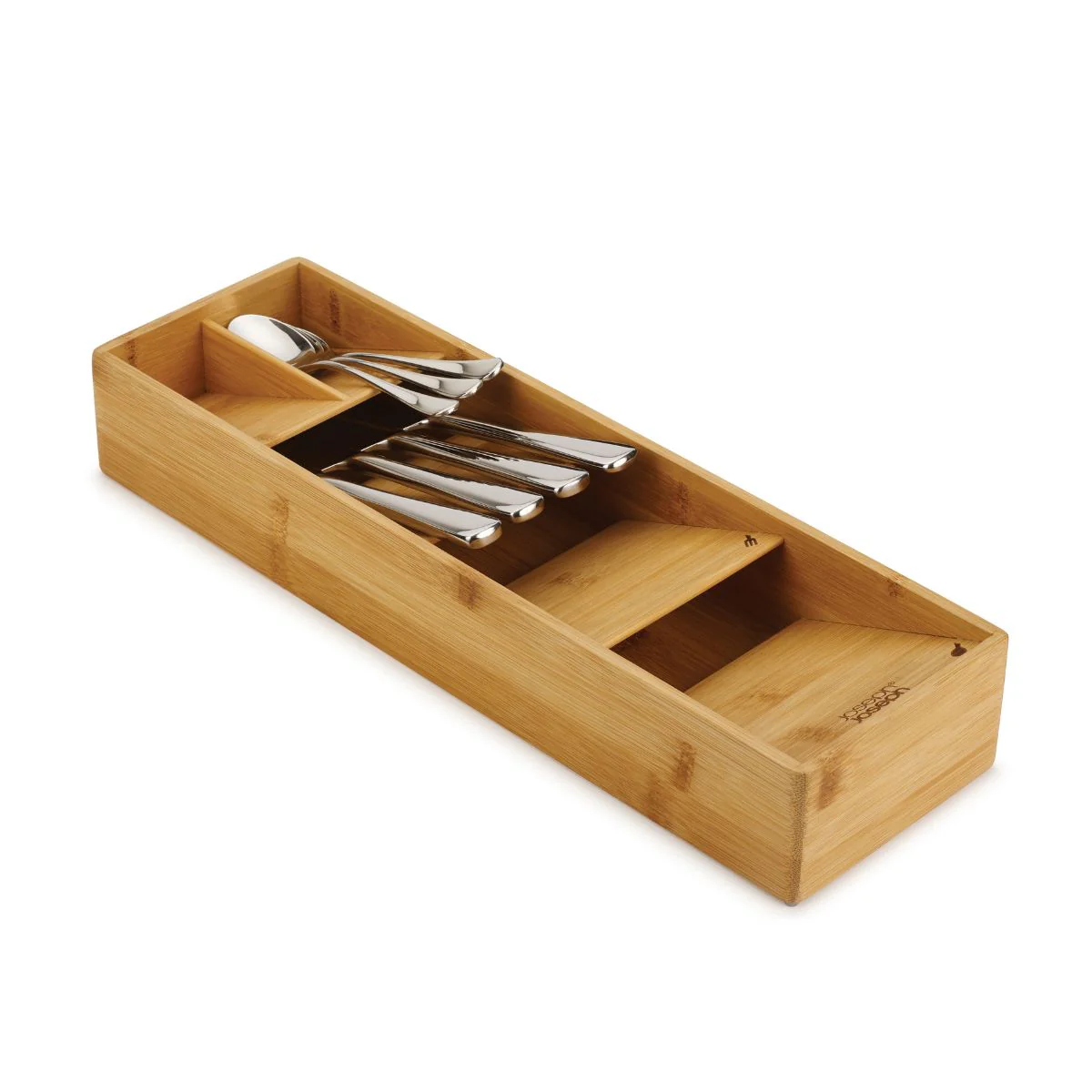 Con el precioso acabado del bambú, el Organizador de cubiertos de bambú DrawerStore Joseph Joseph no solo te ayudará a tener el cajón de los cubiertos mucho más ordenado, sino que le conferirá un aspecto de lo más elegante y armonioso. Y gracias a su diseño inteligente, podrás guardar tus tenedores, cucharas, cucharillas y cuchillos en menos de la mitad del espacio que necesita una bandeja tradicional.