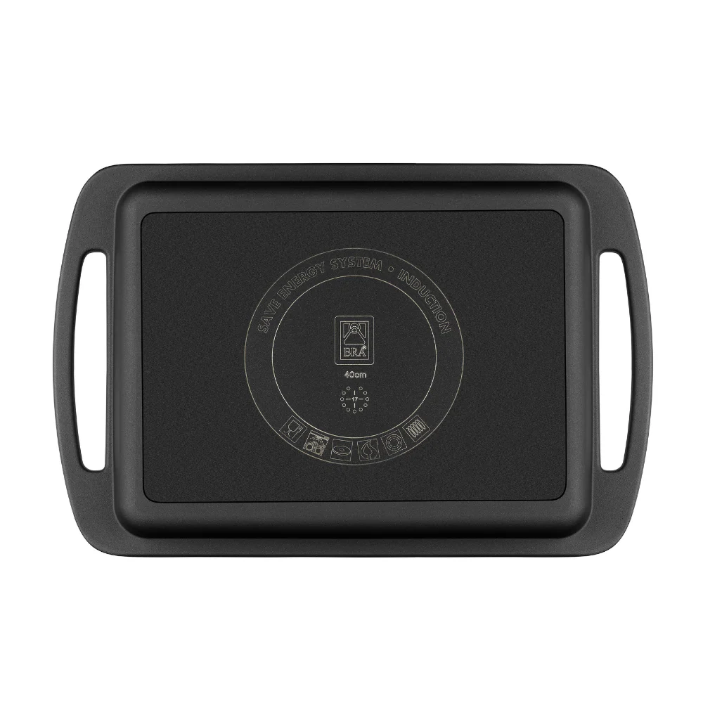 ¿Estás buscando una parrilla en la que no se queden pegados los alimentos? Pues la parrilla antiadherente lisa Premiere de BRA es justo lo que necesitas. Además, debes saber que es una parrilla polivalente y de lo más versátil, que puedes ponerla en el horno y usarla de molde para pasteles de hojaldre, pizzas o irresistibles galletas.