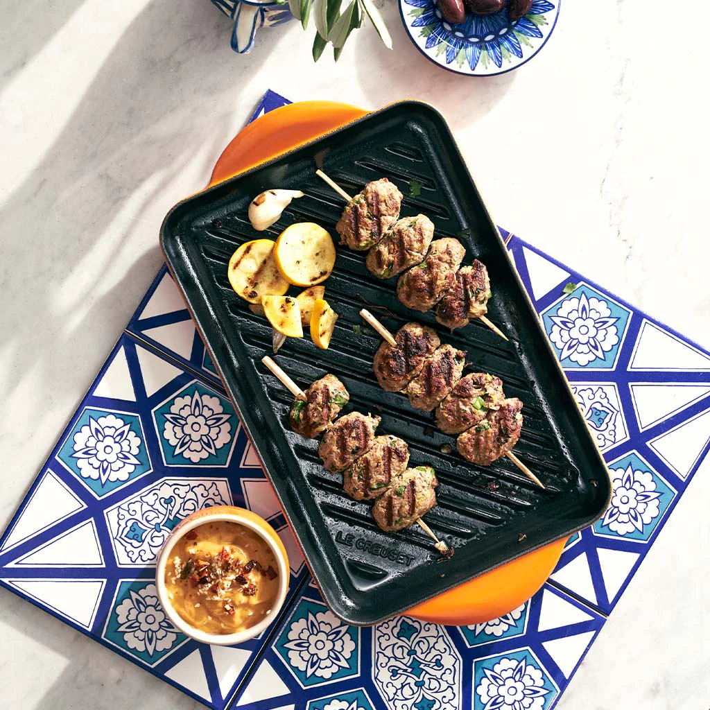 La Parrilla grill rectangular Tradition de Le Creuset es un grill ideal para los cocinillas con aspiraciones a dominar el arte de la plancha. Del mismo tamaño que su hermana la parrilla lisa, está especialmente indicada para cocinar carnes con un toque profesional.