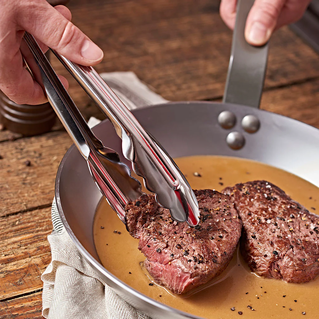 ¡Un clásico de la marca y de todos los amantes de la carne! Las pinzas de acero De Buyer de hoja ancha son unas pinzas que destacan por permitirte agarrar la comida con firmeza y seguridad.