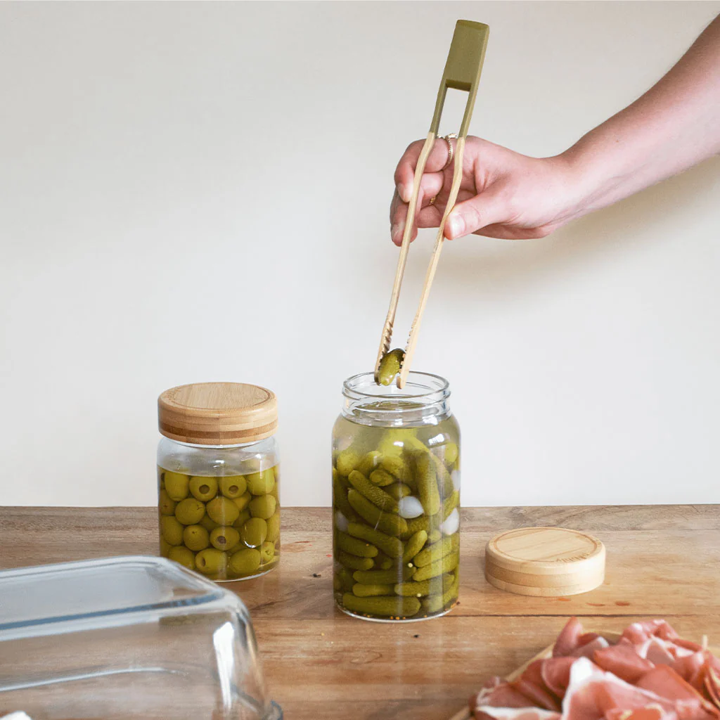 • Retirar pepinillos y aceitunas u otros aperitivos en bote: Si sirves aperitivos en tarros o botes, las pinzas facilitarán la extracción de elementos como pepinillos, aceitunas o pequeños encurtidos.