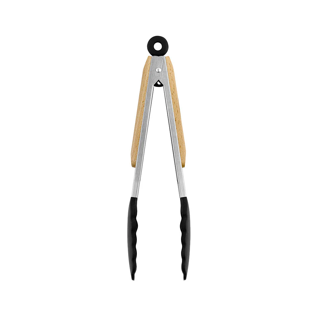 El mango de las pinzas es de lo más ergonómico y está elaborado con madera de haya, cosa que le aporta un toque elegante y sofisticado. La pala de las pinzas es de silicona de alta calidad que resiste hasta 200º pudiéndose utilizar sin problemas. Ambas partes están unidas por una parte de acero inoxidable que aporta consistencia y robustez a la estructura.