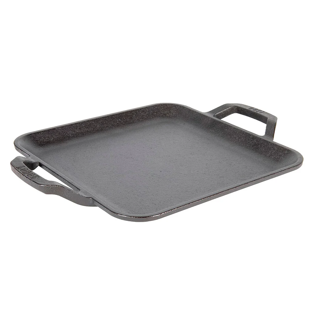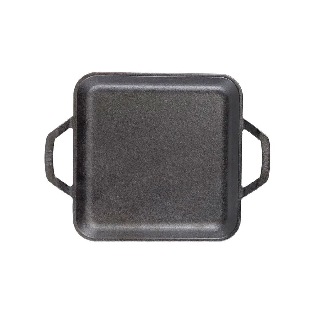 - Plancha cuadrada lisa de hierro fundido con asas.