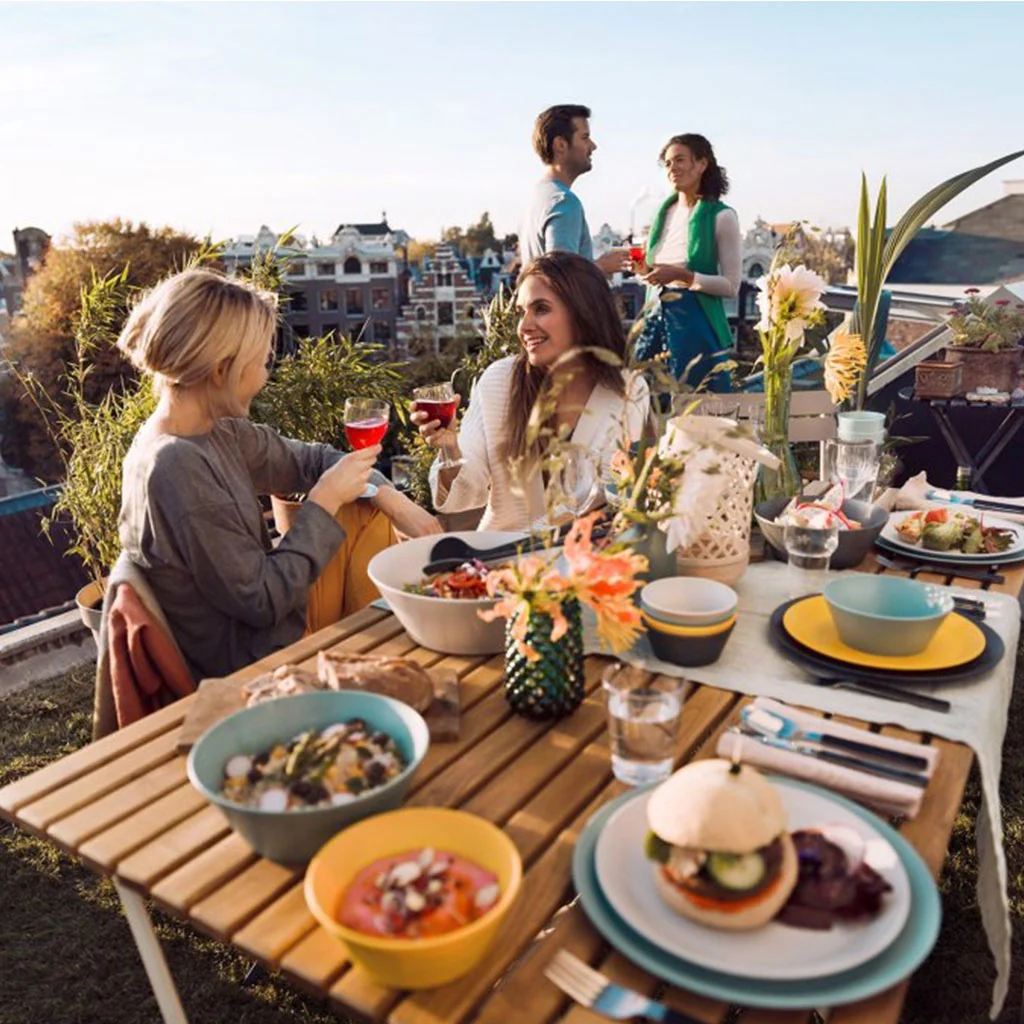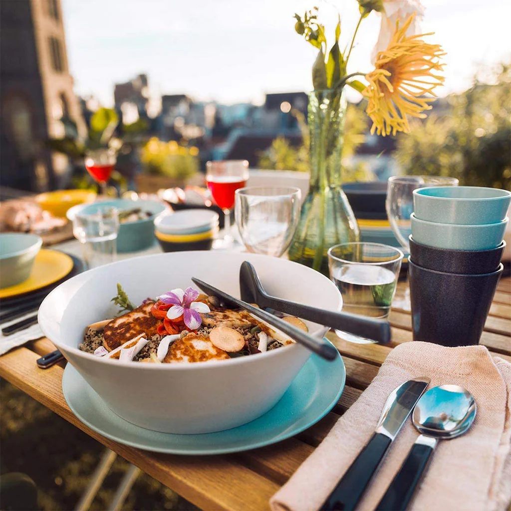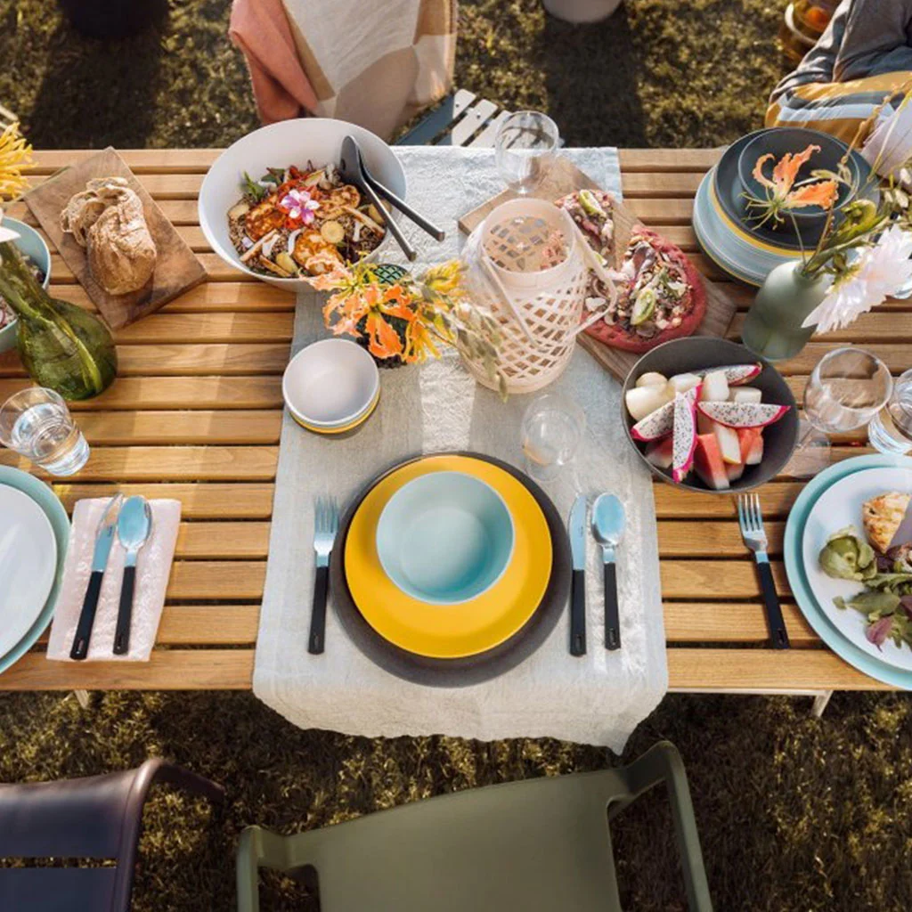 Tan funcionales como llenos de estilo, son unos platos estupendos para no tener que preocuparte de nada más que de disfrutar del menú y de la compañía. Extremadamente resistentes, ligeros y con diseño perfecto para usar en el exterior, para llevarlos al camping y también para usar dentro de casa.