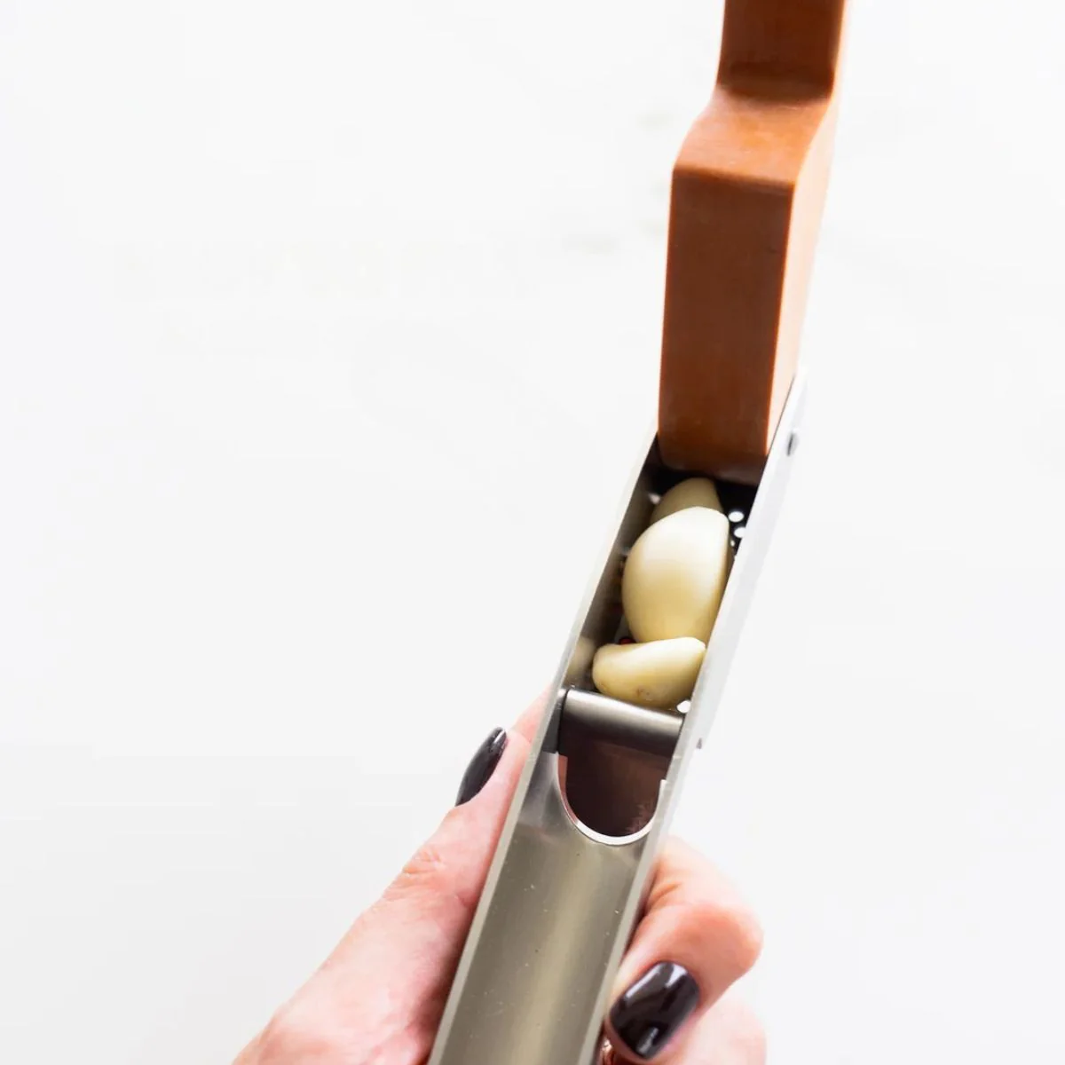 - Es ideal para prensar los ajos sin ensuciarse las manos y sin quedarse con su intenso olor en los dedos.