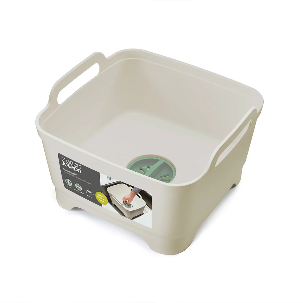 El Recipiente para fregadero Wash&Drain Joseph Joseph es un barreño cuadrado con un diseño de lo más ingenioso. Dispone de un canal de desagüe con sumidero, ideal para escurrir el agua sin tener que levantarlo. Además, el sumidero es ajustable, por lo que no solo actúa como tapón, sino que ayuda a colar el agua, evitando que los restos sólidos se vayan por el fregadero. Cuenta con dos asas, para poderlo levantar con comodidad y llevarlo donde lo necesites.