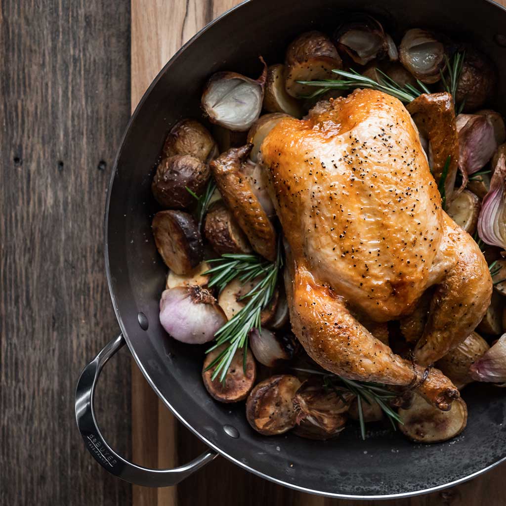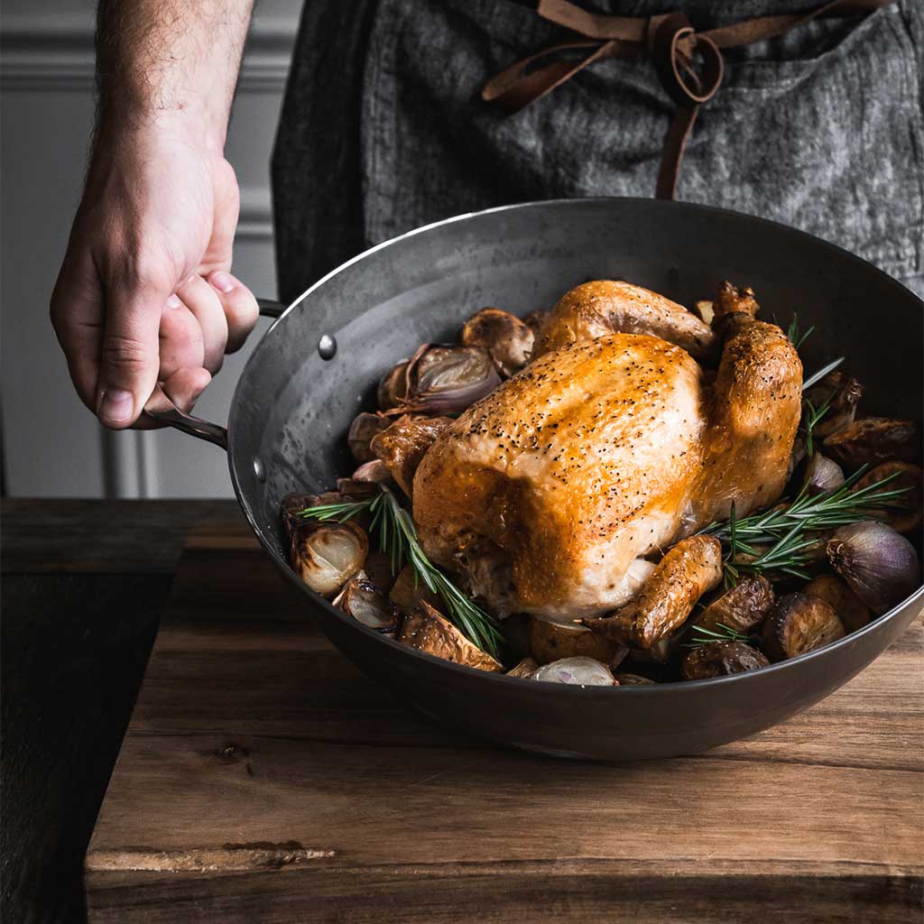 - Asados y gratinados en el horno. Con capacidad para hornear un pollo entero con sus patatas y cebollas de acompañamiento, podrás asar cualquier alimento, tanto carnes y pescados como verduras. Es también una opción estupenda para cocinar en el horno platos como frittatas o pasteles de carne. Y sin duda, es muy cómoda para cocinar con ella en el fuego y dar un acabado tostado o gratinado en el horno.