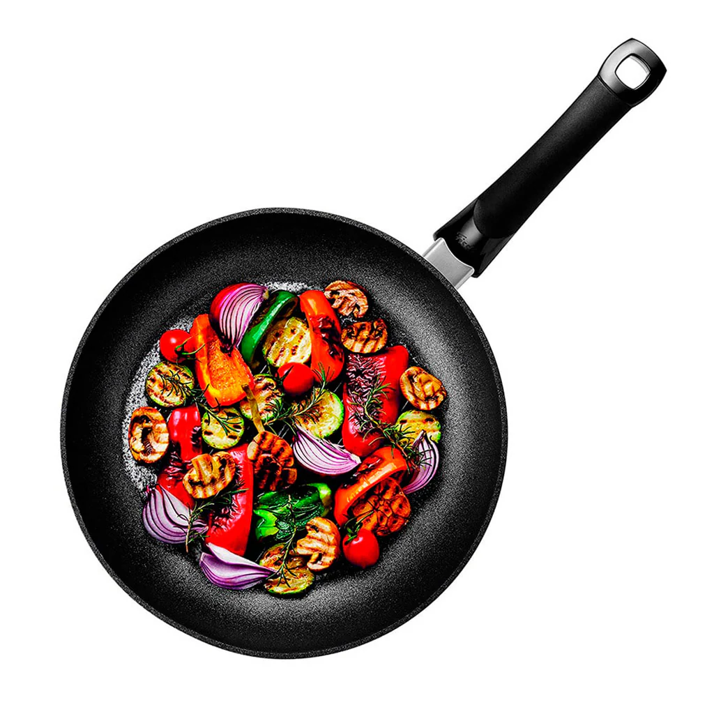 - Su mayor altura es de gran ayuda para cocinar todo tipo de platos, incluso salsas y guisos caldosos. Además, proporciona una mayor capacidad.