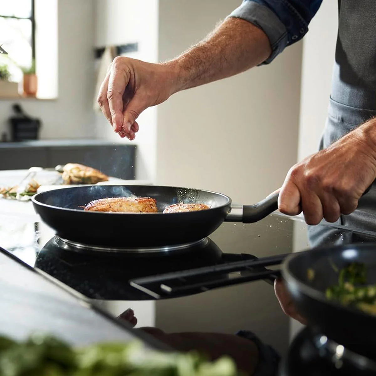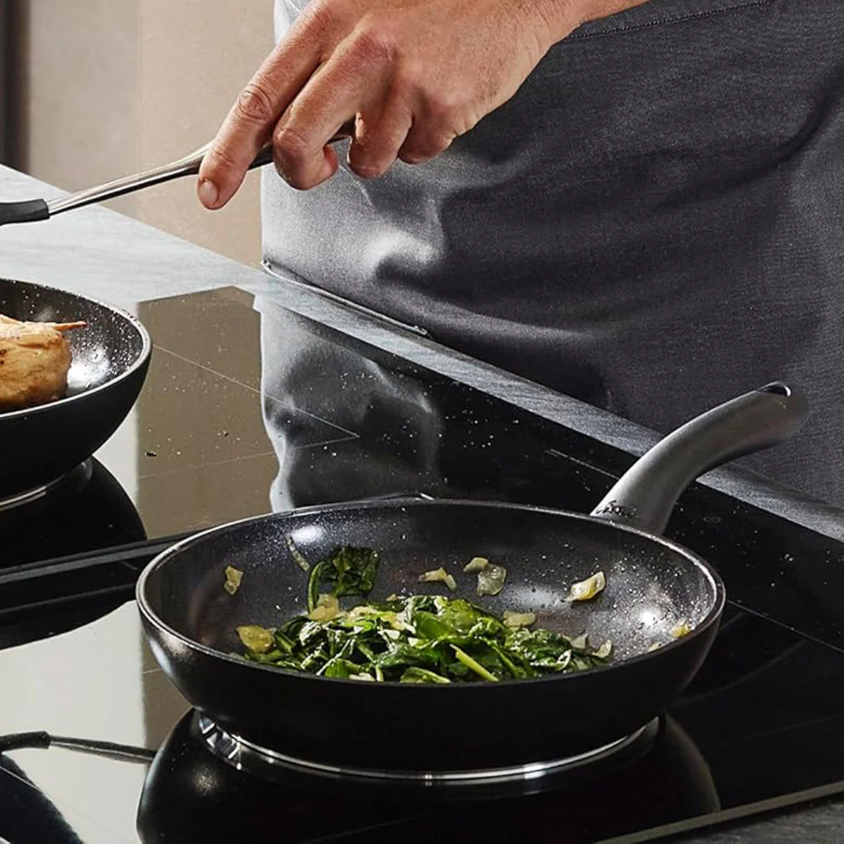 Su recubrimiento cerámico en color negro, elegante y resistente, es ideal para cocinar verduras, carnes, pescados o huevos sin que se peguen, y para lograr dorados uniformes con un excelente control del calor. Además, es apta para todas las fuentes de calor, incluida la inducción.