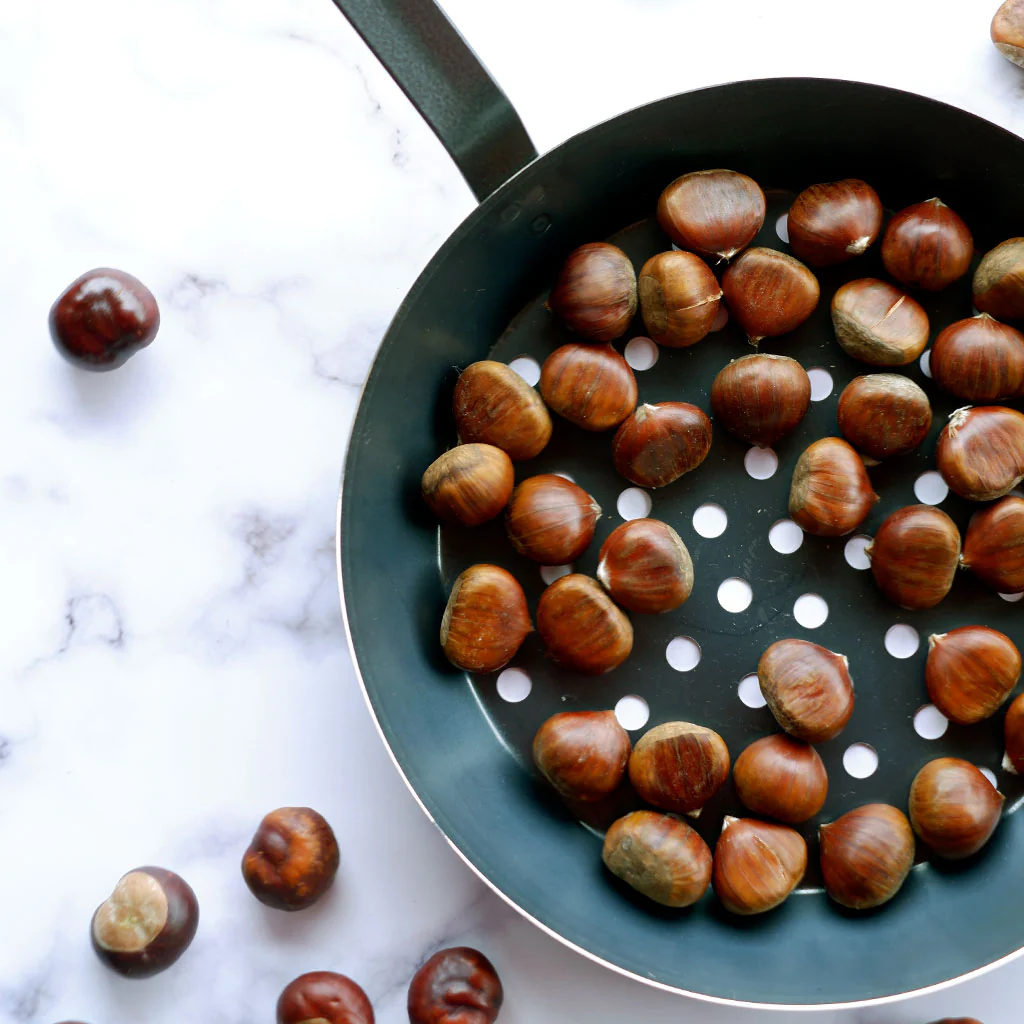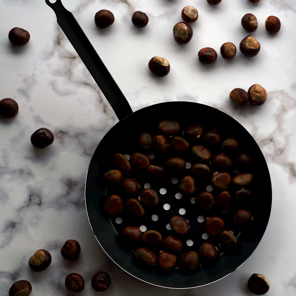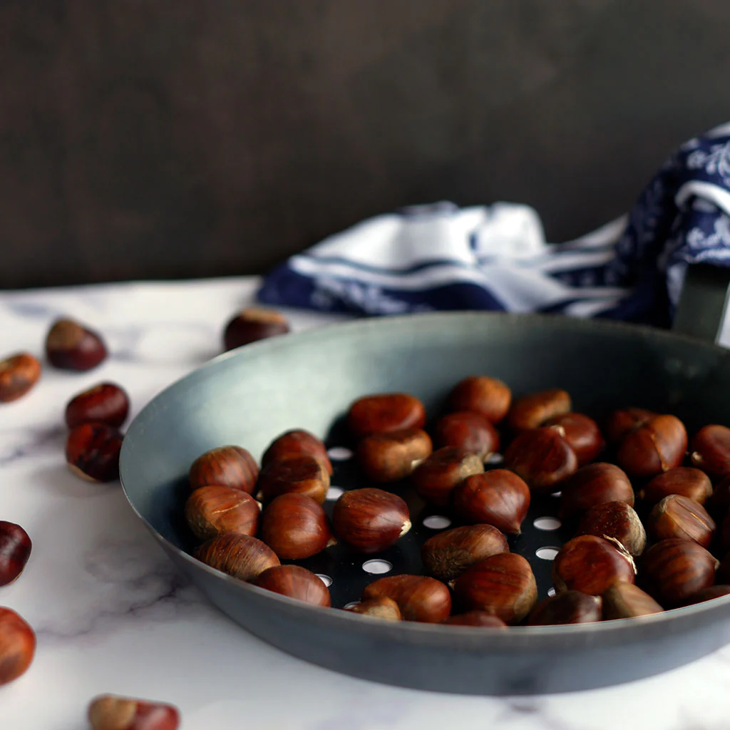 Por qué nos gusta la Sartén de hierro De Buyer para asar castañas