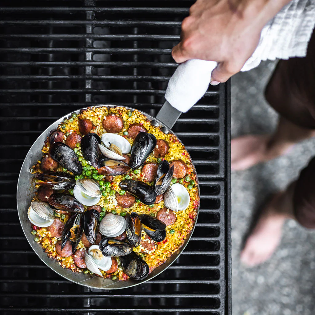 Es una sartén de hierro, apta para el fuego pero también para la barbacoa, el horno o la chimenea (ya te imaginas asando unas salchichas o haciendo hamburguesas con ese sabor ahumado, ¿verdad?).