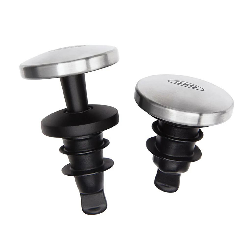 Ideal para los amantes del vino, el Set de 2 tapones herméticos para vino OXO es una forma fácil y práctica de mantener tu vino fresco después de abrir la botella. Están hechos de acero inoxidable y silicona, lo que garantiza un sellado perfecto para evitar que el aire entre y el vino se estropee, ayudando así a conservar su delicioso sabor y aroma por mucho más tiempo.