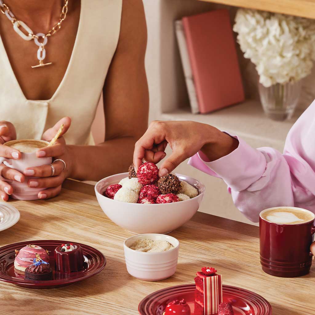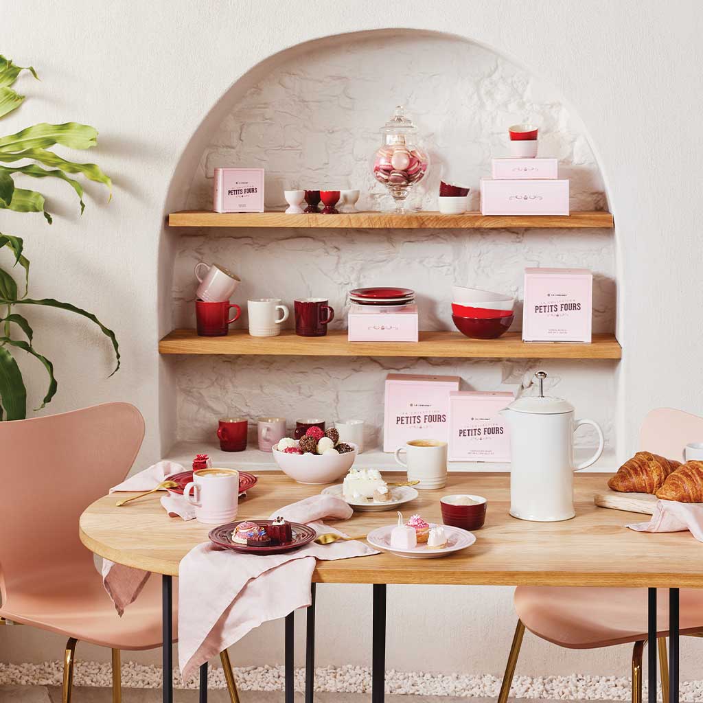 La colección Petit Fours de Le Creuset, lleva los colores de los dulces más famosos de Francia a tu mesa. Garnet, cereza, merengue y shell pink forman un cuarteto de lo más exquisito, en una colección inspirada en los coloridos dulces franceses que se sirven con el café.