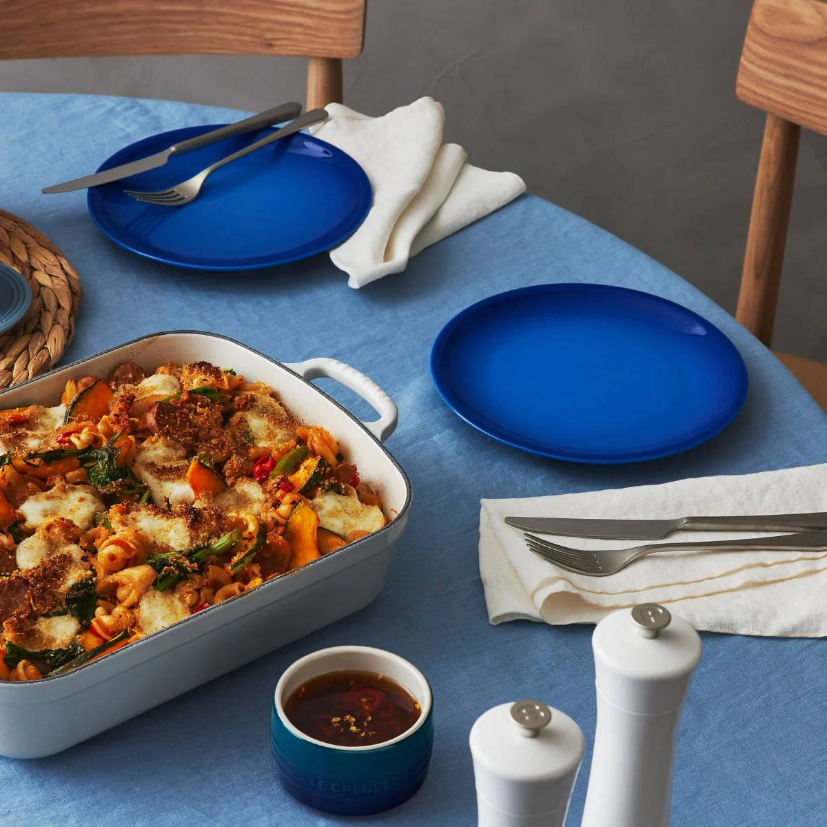 La cerámica de Le Creuset es muy resistente a los pequeños golpes y arañazos, por lo que son una opción fantástica como vajilla de diario. Además, son aptos para su uso en el horno, por lo que se convierten en una bandeja ideal para hornear tus recetas directamente en ellos y servirlos tal cual en la mesa.