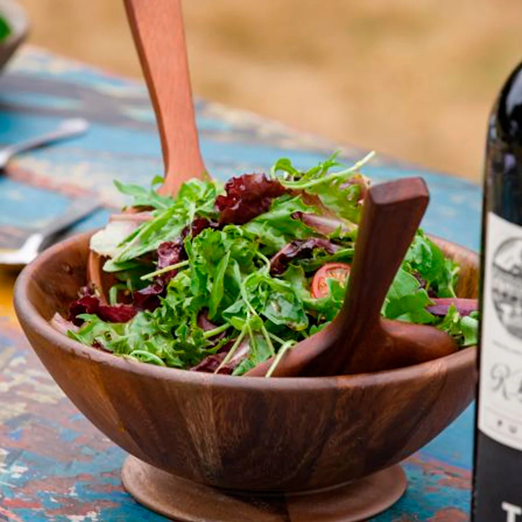 El Set de servir ensaladas Tuscany Siena de T&G es un práctico conjunto de tenedor y cuchara de madera para servir ensalada, un set ideal para una mesa con estilo. Sus líneas redondeadas y la forma cóncava del cuerpo de las piezas, son perfectas para coger las hojas de ensalada, pero también para recoger los ingredientes de la misma que puedan haber quedado en el fondo del bol, y servir con delicadeza y estilo.