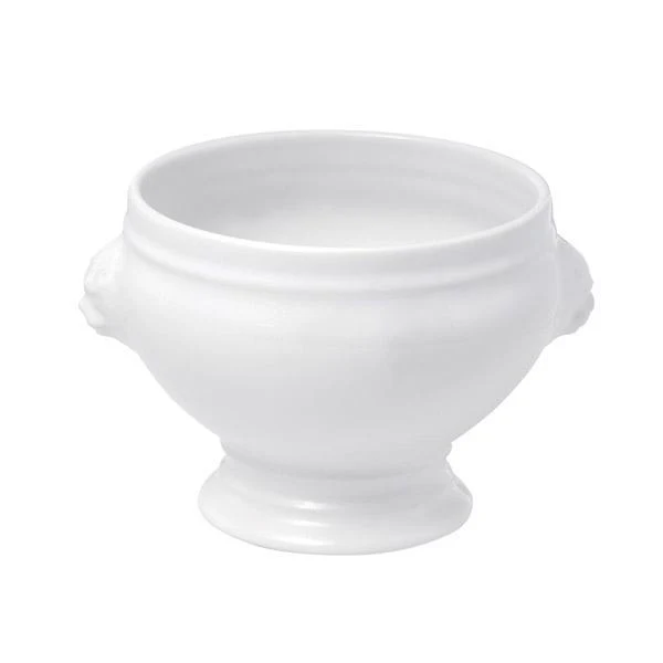 Las dos cabezas de león de los laterales decoran cada una de las piezas, a la vez que se convierten en el punto de apoyo perfecto si se quiere coger la sopera. Además, la sopera se erige sobre su pie de porcelana, esbelto y elegante.