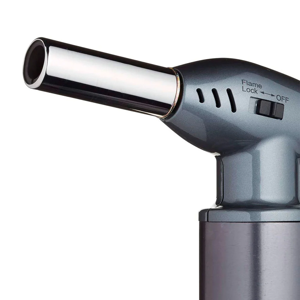 El soplete profesional cuenta con un cuerpo de metal de fácil agarre. El encendido es instantáneo, con solo apretar el gatillo. La intensidad de la llama es regulable, para que puedas ajustarla a lo que necesites. Además, dispone de bloqueo de seguridad accesible con facilidad, para que puedas manipularlo sin miedo.